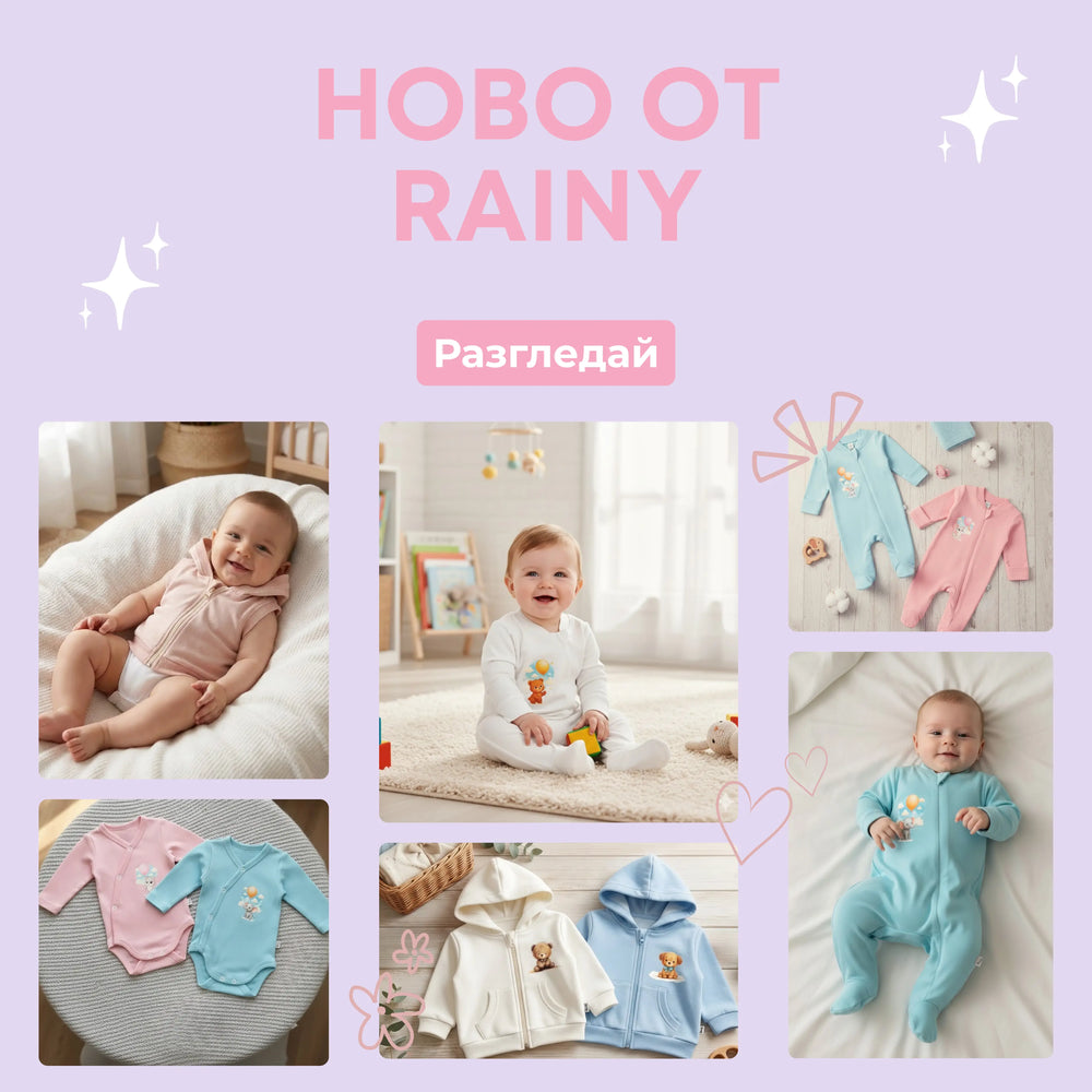 Независимо дали се подготвяш за изписване, търсиш дрешки за сезона или искаш подарък за новородено, Rainy е твоят бебешки магазин, който съчетава стил и функционалност.