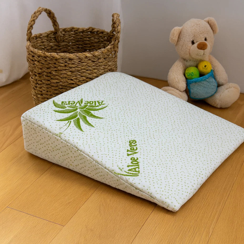 Бебешка антирефлуксна възглавница Aloe (Алое Вера). Тя леко и нежно повдига главата и торса на бебето за улесняване на дишането и храносмилането. Удобната възглавница ще гарантира сладки и спокойни бебешки сънища.