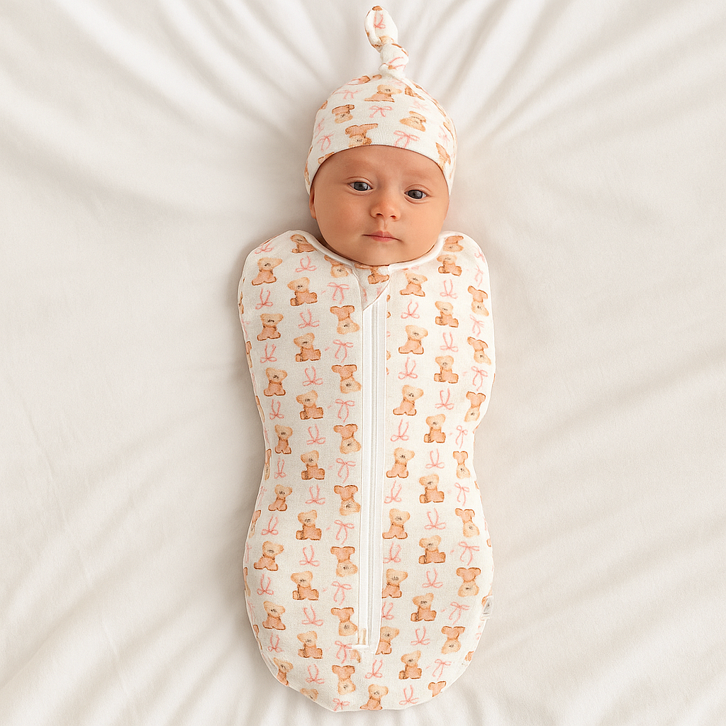 Изработена от висококачествени материали, тази пелена осигурява не само топлина и уют, но и спокоен сън за вашето дете. Специалният антистресов ефект е разработен, за да дава на бебето усещане за сигурност и защита, подобно на прегръдката на майката. Практичният цип улеснява бързото и лесно преобличане, а атрактивният дизайн добавя едно изискано докосване към бебешката стая.