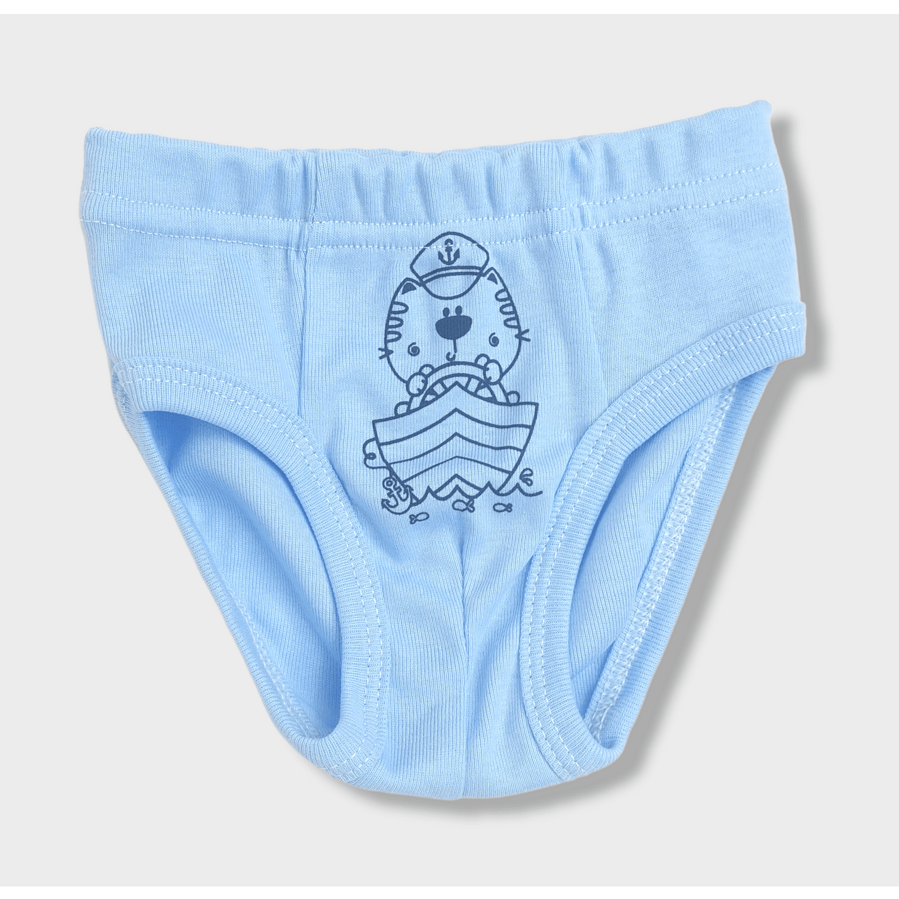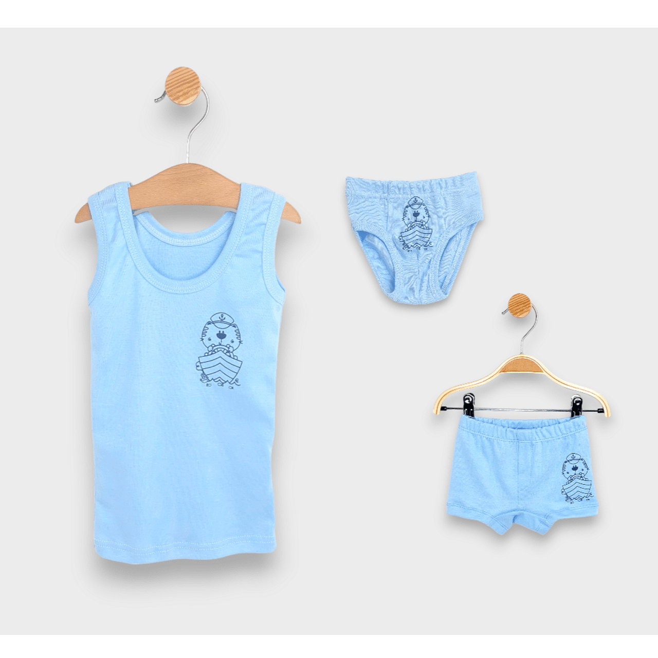 Детски комплект от три части - потник, слипче и боксерки от едноцветен памучен щрик със ситопечат Мечо Моряк