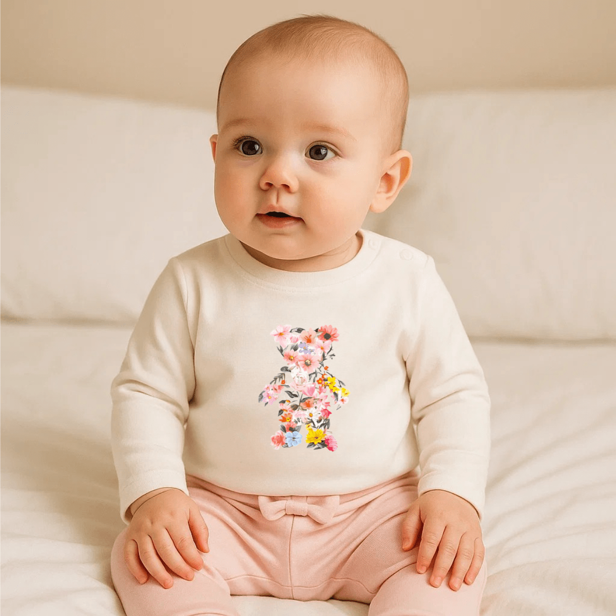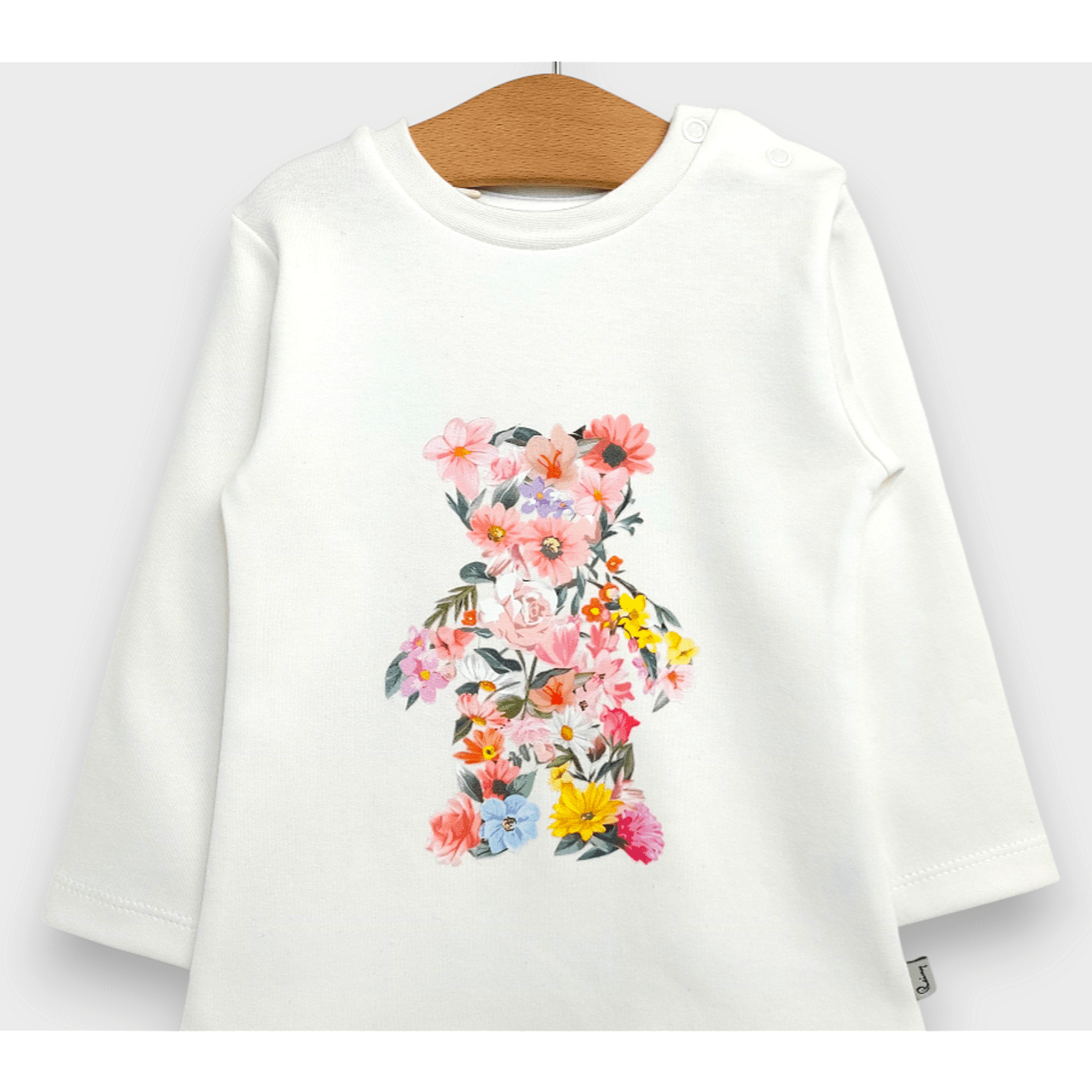 Бебешка блуза с дълъг ръкав Цветно мече е със свободна и удобна кройка. Изработена от мека и лека метирия. Блузата се комбинира чудесно с всеки панталон . С весела и закачлива картинка.