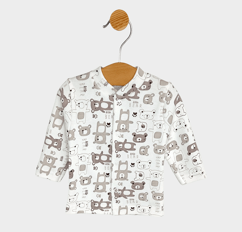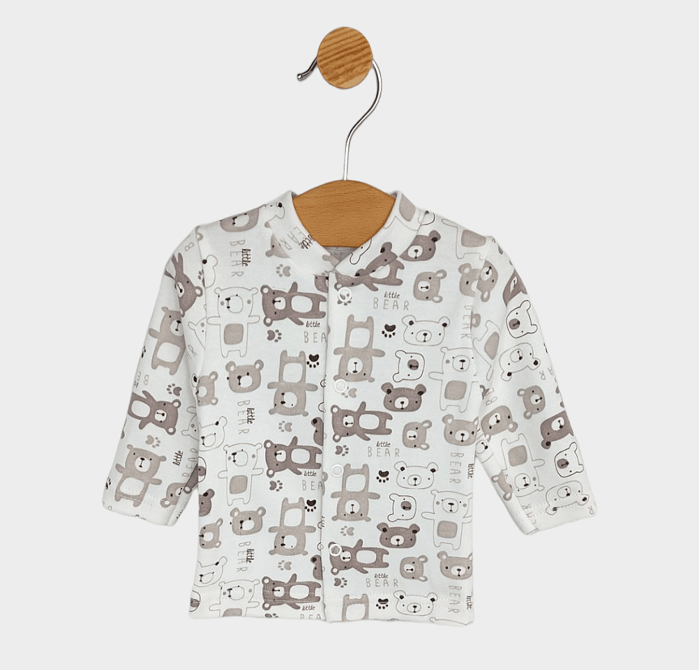 Бебешка жилетка Мечета с предно закопчаване от нежна и мека материя в пастелни цветове. Удобно закопчаване, посредством тик-так копчета. Изработена от 100% памучна материя, щадяща деликатната бебешка кожа. Бебешката жилетка се предлага от новородено до 4 месечна възраст. Произведено от българския бранд Rainy.