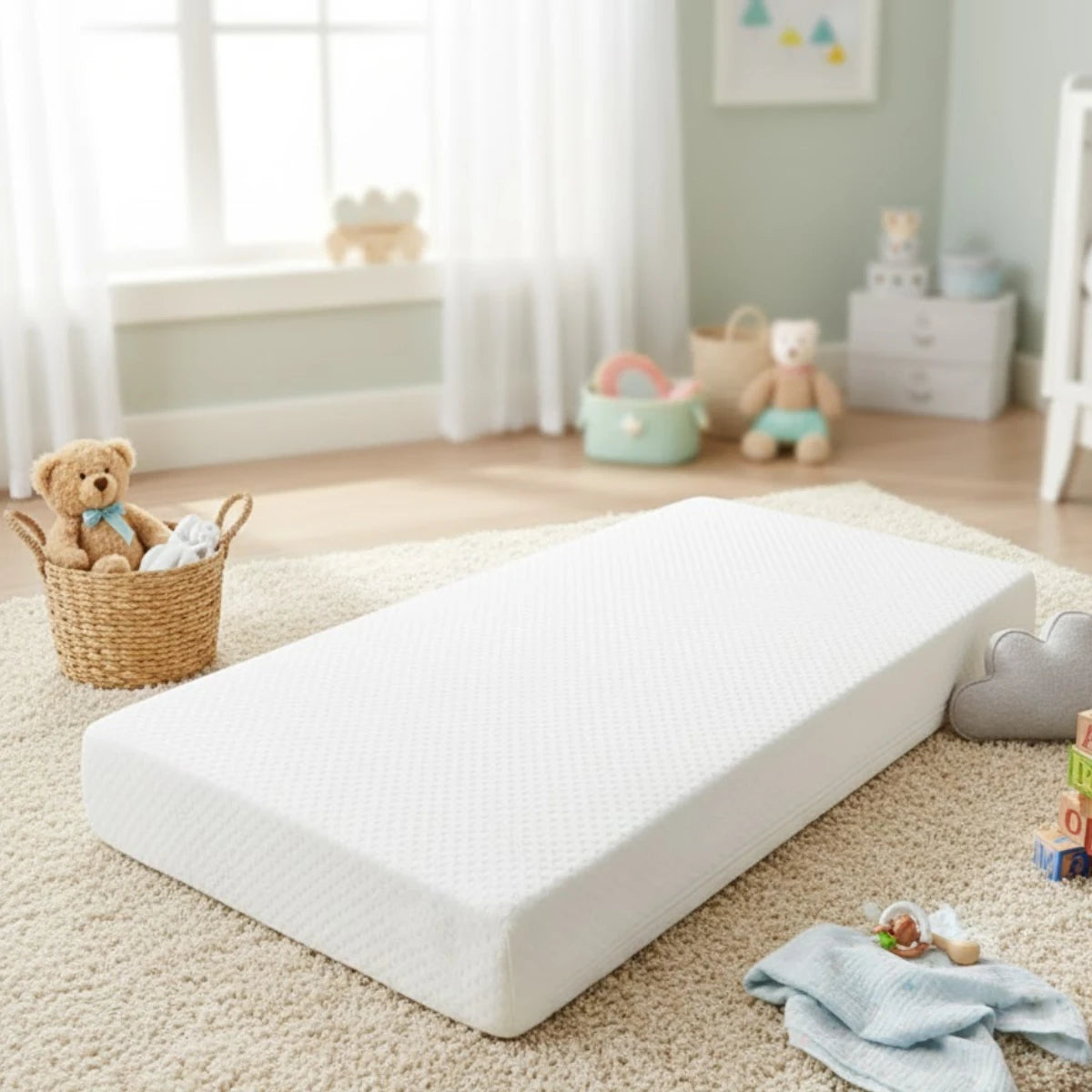 Двулицев детски матрак с дебелина 12 см. по най-съвременна технология. Благодарение на своята гъвкавост Latex пяната перфектно приляга на формата на тялото. Сваляемия калъф с цип, изработен с истински луксозни, естествени кашмирени нишки. Уникално фини, меки и приятни на допир, има свойството да запазва телесната температура, които го правят перфектен за използване както през лятото, така и през зимата.
