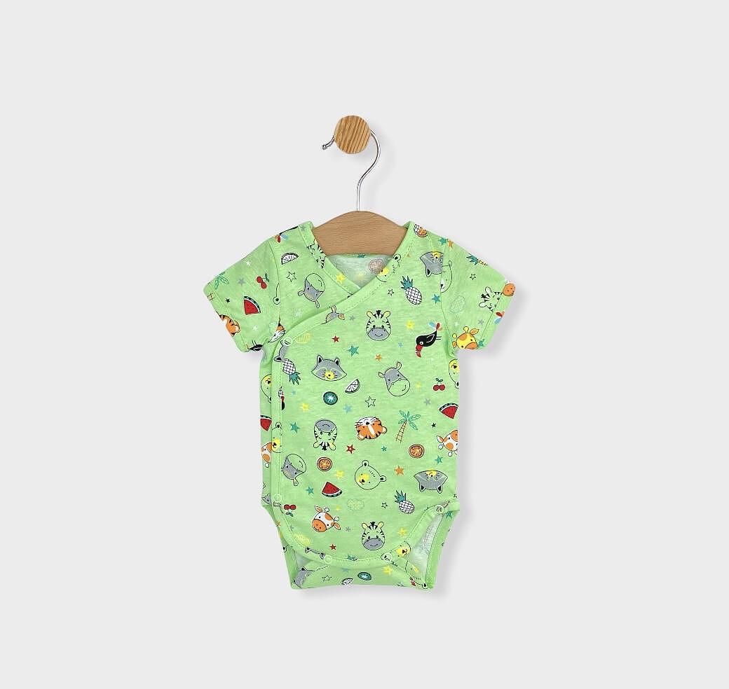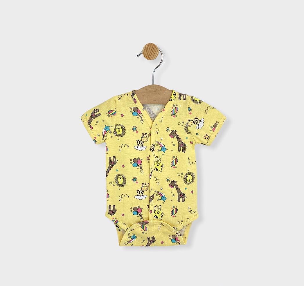 Бодито с къс ръкав за бебе покрива тялото и раменете, като оставя ръцете свободни. То запазва всички предимства на класическото боди – стабилно прилягане, лесно закопчаване и защита на гърба и коремчето – но с допълнителна свобода на движение и прохлада.