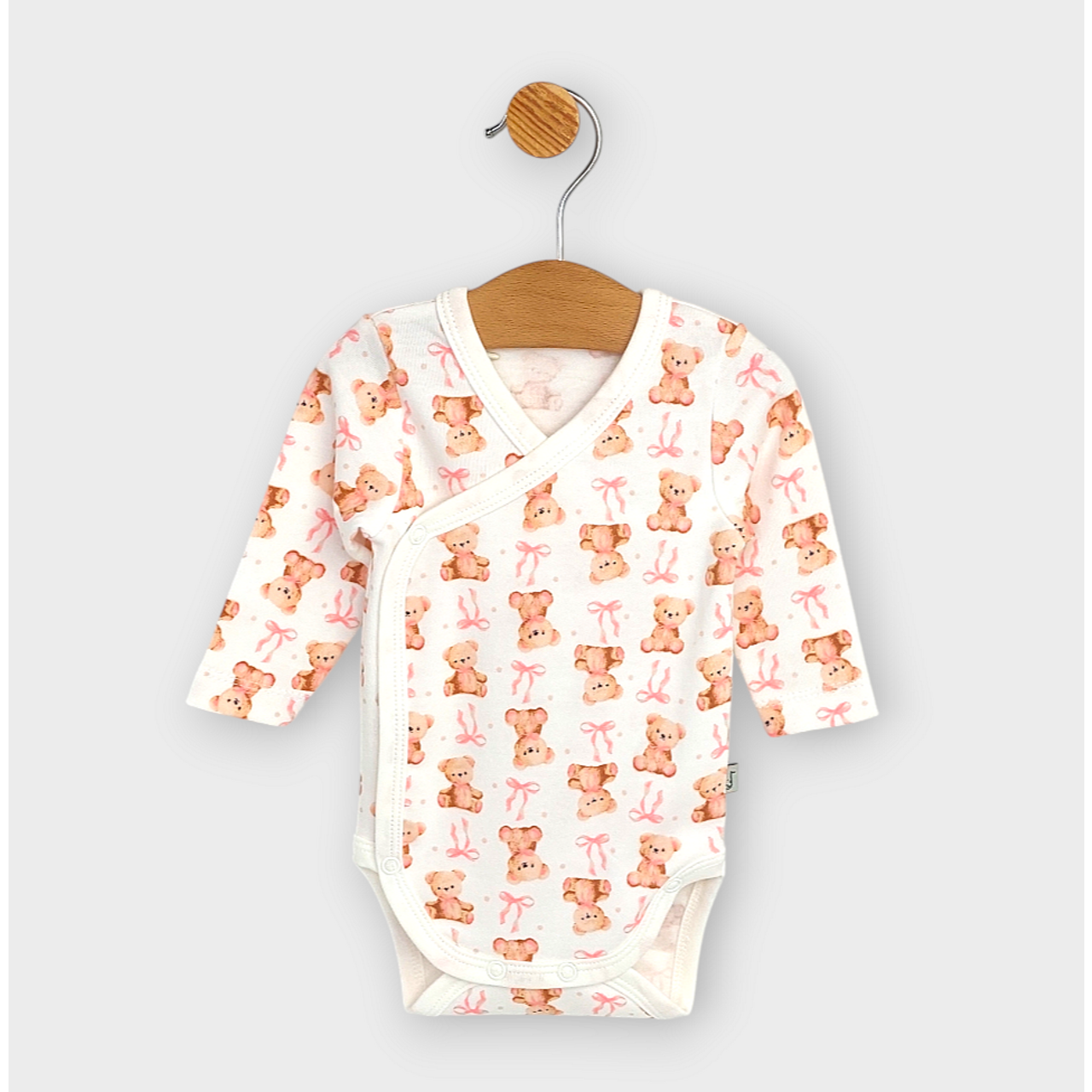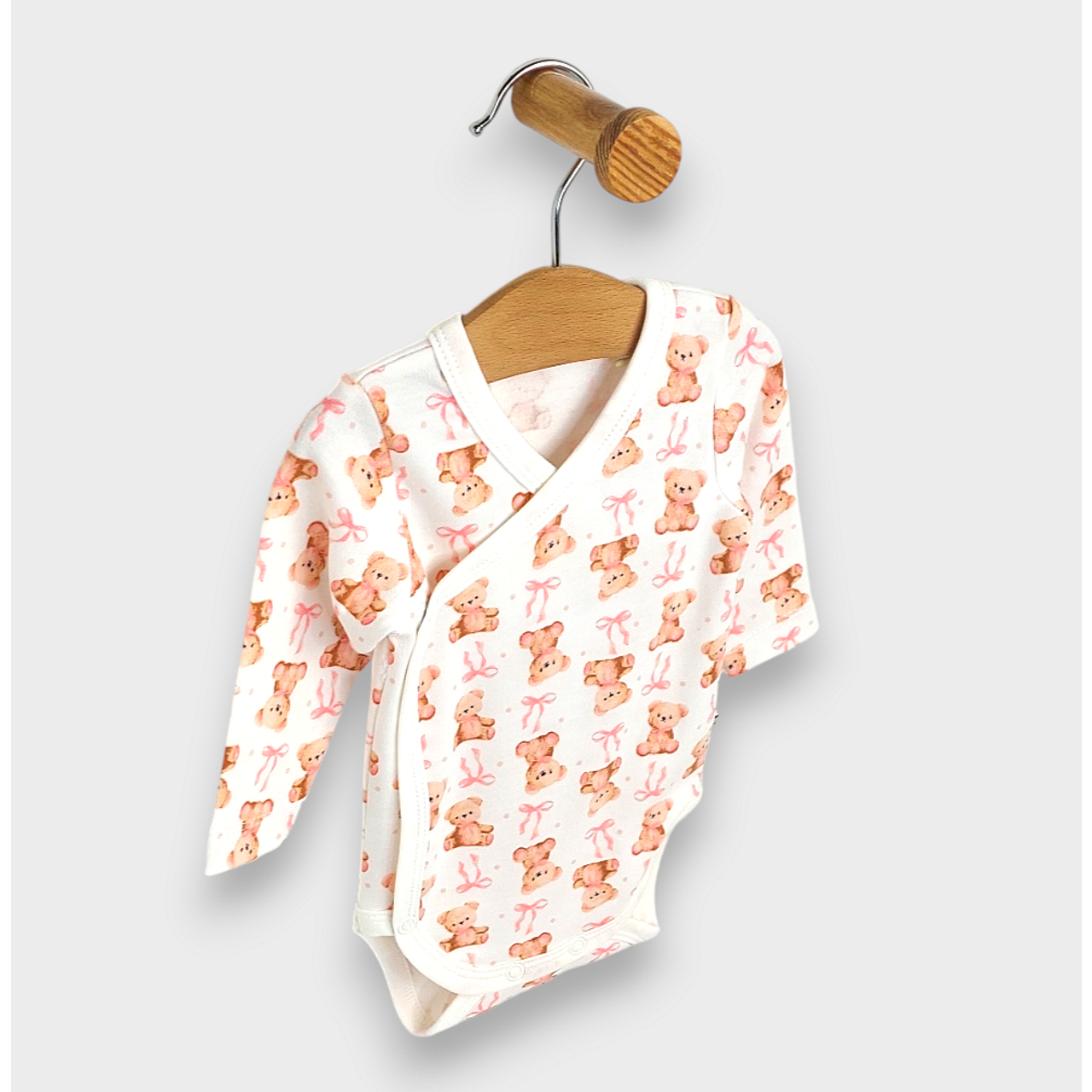 Rainy Бебешко боди със странично закопчаване 56 - 80см. Мече с панделка