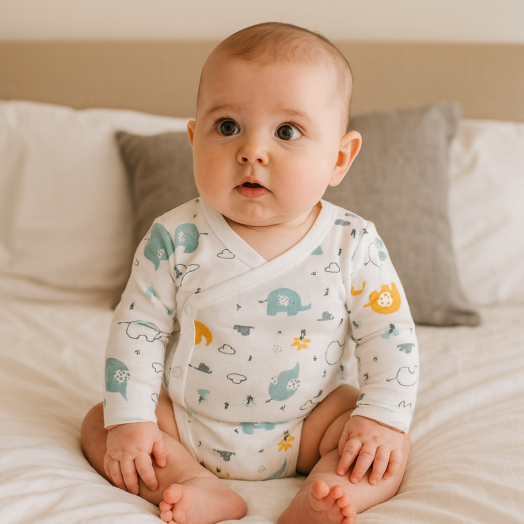 Защо да изберете обикновено бебешко боди, когато можете да облечете вашето мъниче в изящество и комфорт? Представяме ви "Rainy Бебешко боди със странично закопчаване 56 - 80см. " - въплъщение на нежност и удобство за вашето бебе.
