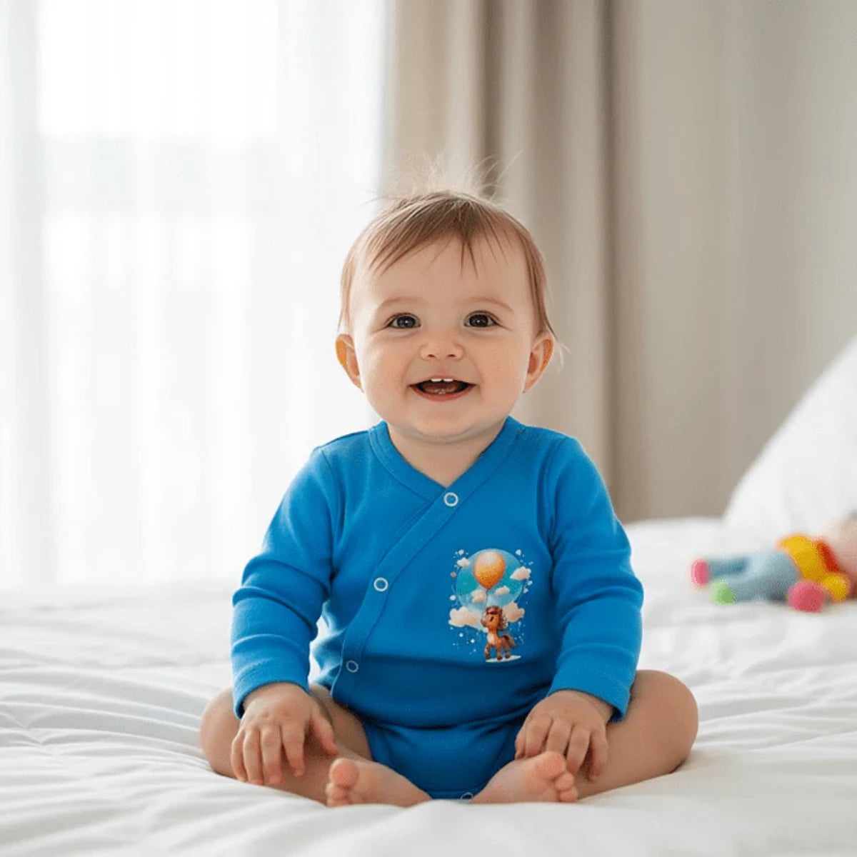 Защо да изберете обикновено бебешко боди, когато можете да облечете вашето мъниче в топлите прегръдки на "Rainy Бебешко боди със странично закопчаване Конче с балон"? Сладкото боди е не просто дреха, а послание за нежност и стил, което вашето бебе заслужава.