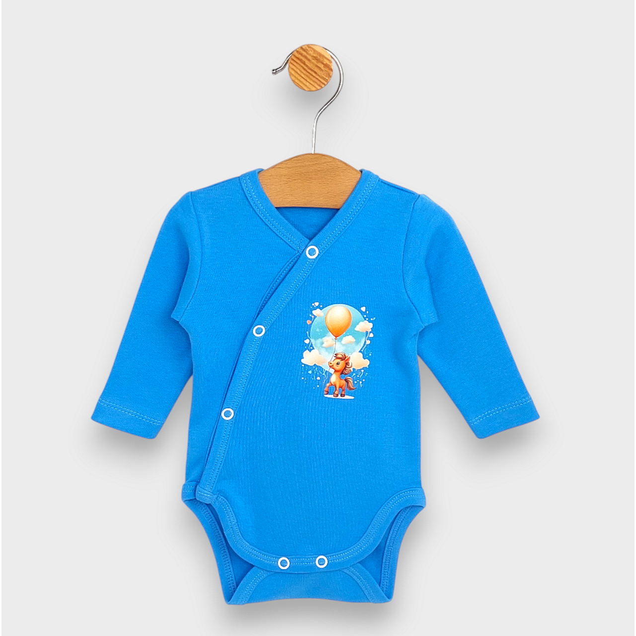 Rainy Бебешко боди със странично закопчаване Конче с балон 48 - 74 см. небе