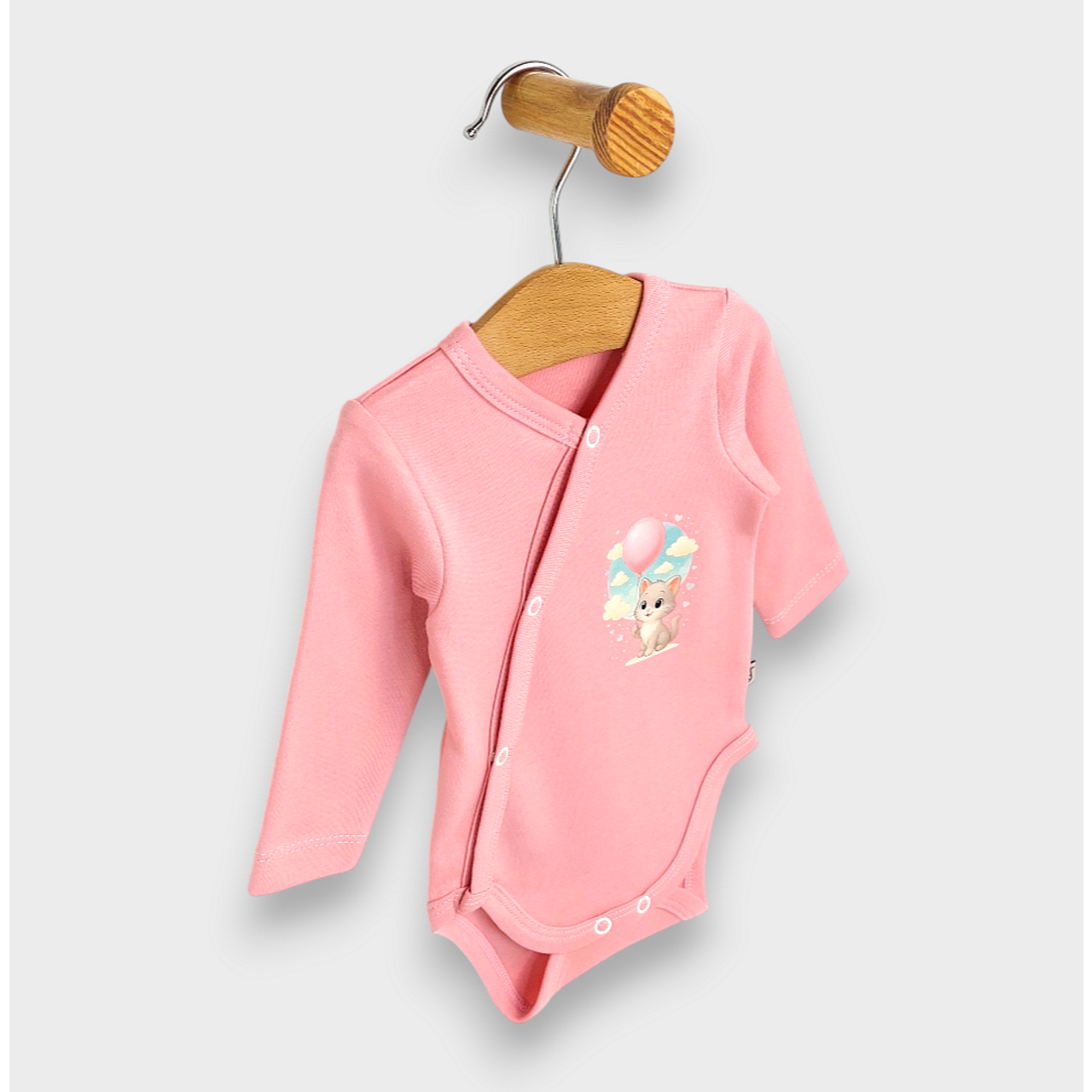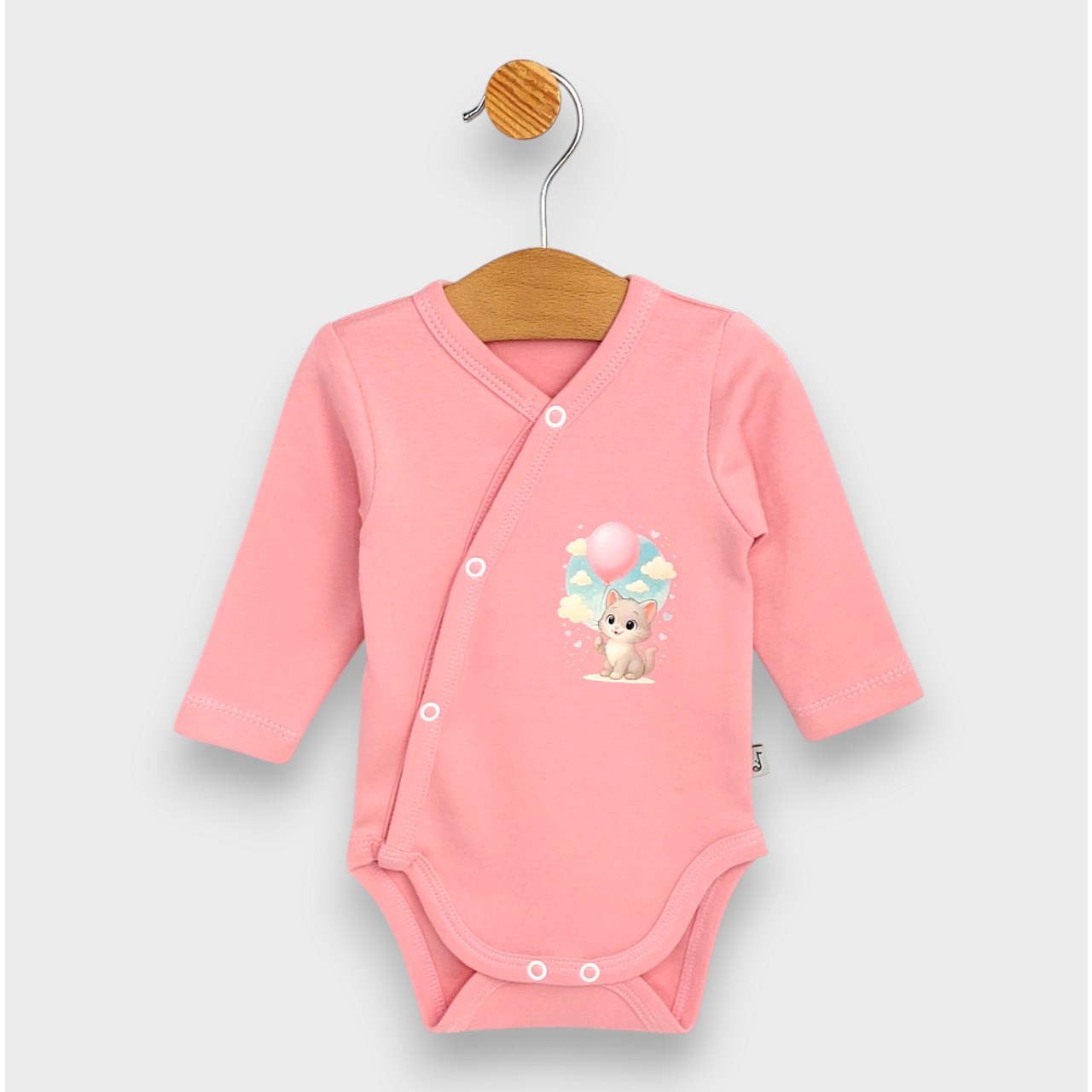 Rainy Бебешко боди със странично закопчаване Коте с балон 48 - 74 см. пудра