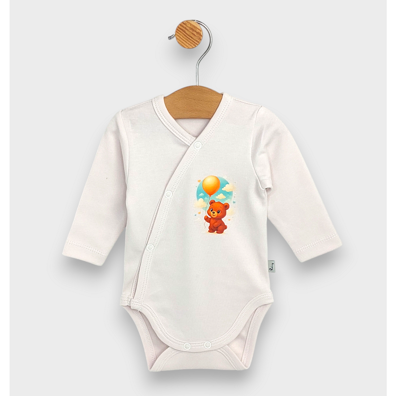 Защо да изберете обикновено бебешко боди, когато можете да облечете вашето мъниче в топлите прегръдки на "Rainy Бебешко боди със странично закопчаване Мече с балон"? Сладкото боди е не просто дреха, а послание за нежност и стил, което вашето бебе заслужава.