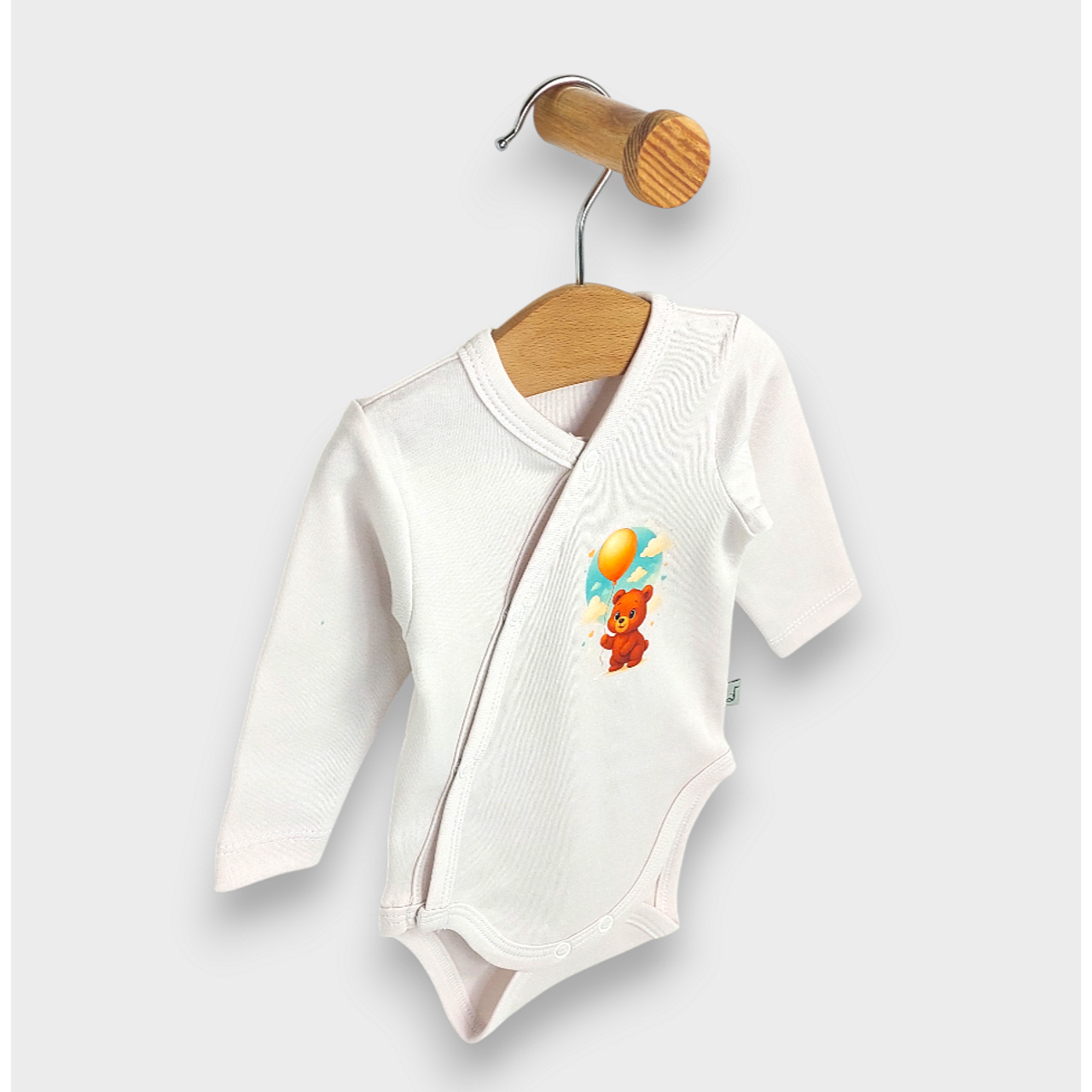 Rainy Бебешко боди със странично закопчаване Мече с балон 48 - 74 см. нежно екрю