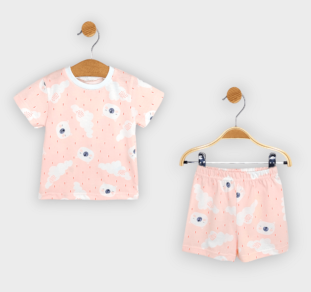 Детска пижама с къс ръкав от щампирано трико ще пренесе децата с лекота в чудния свят на сънищата.Тя е чудесен избор - удобна и практична. Свободната кройка и удобният ластик на талията позволяват максимален комфорт през цялата нощ.