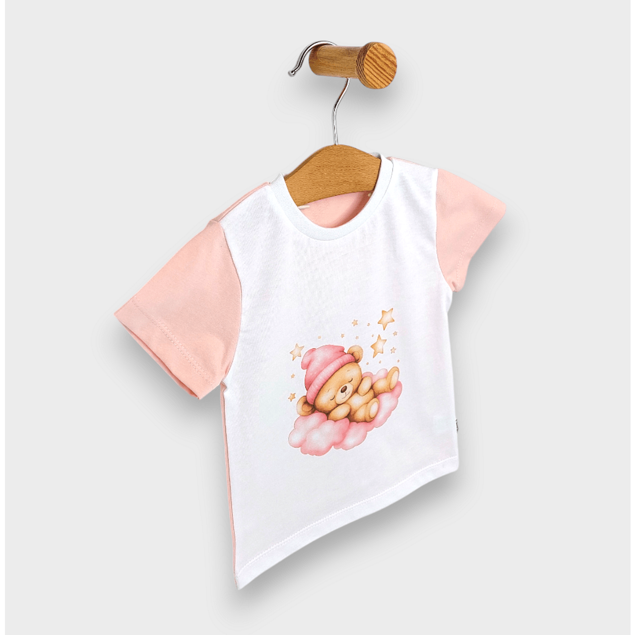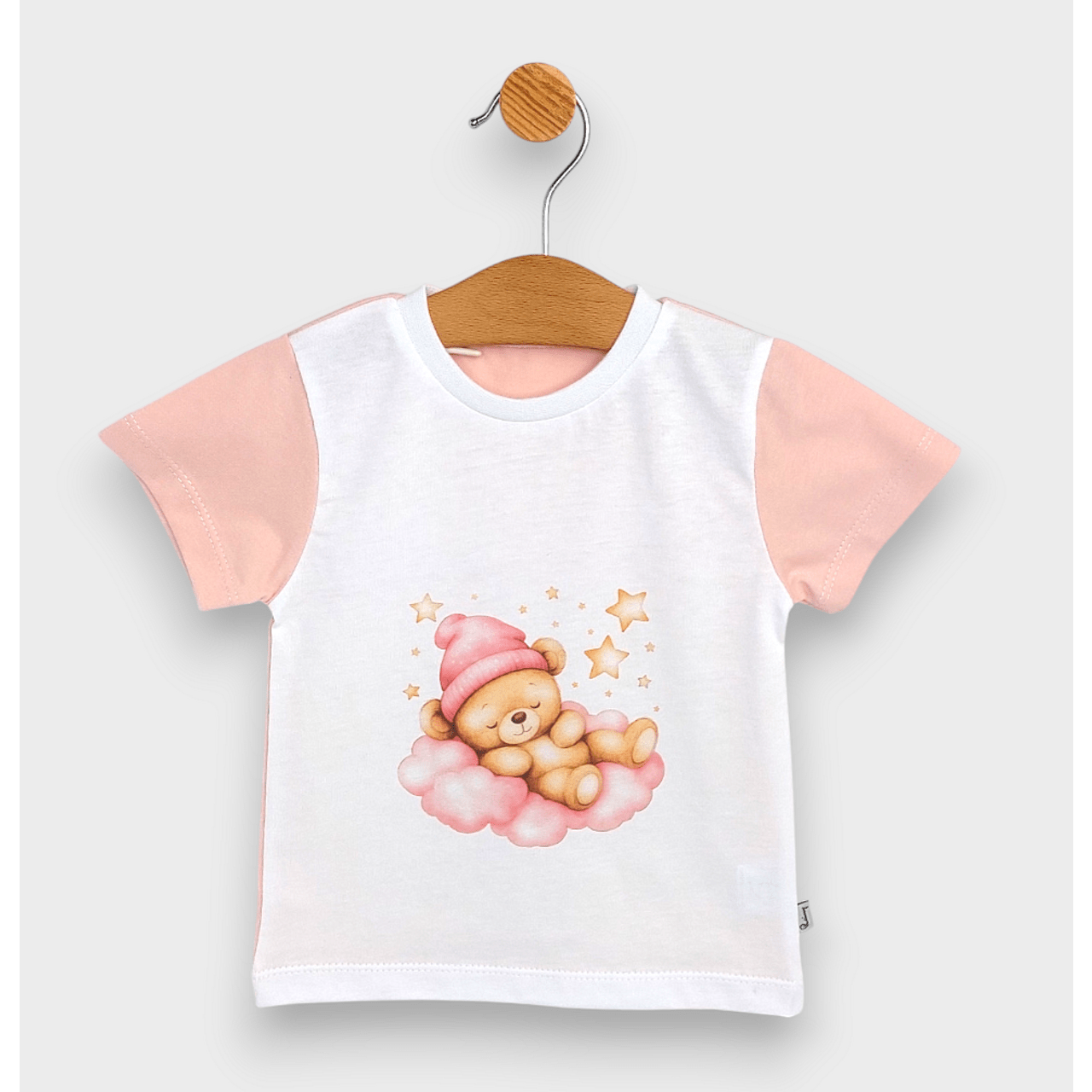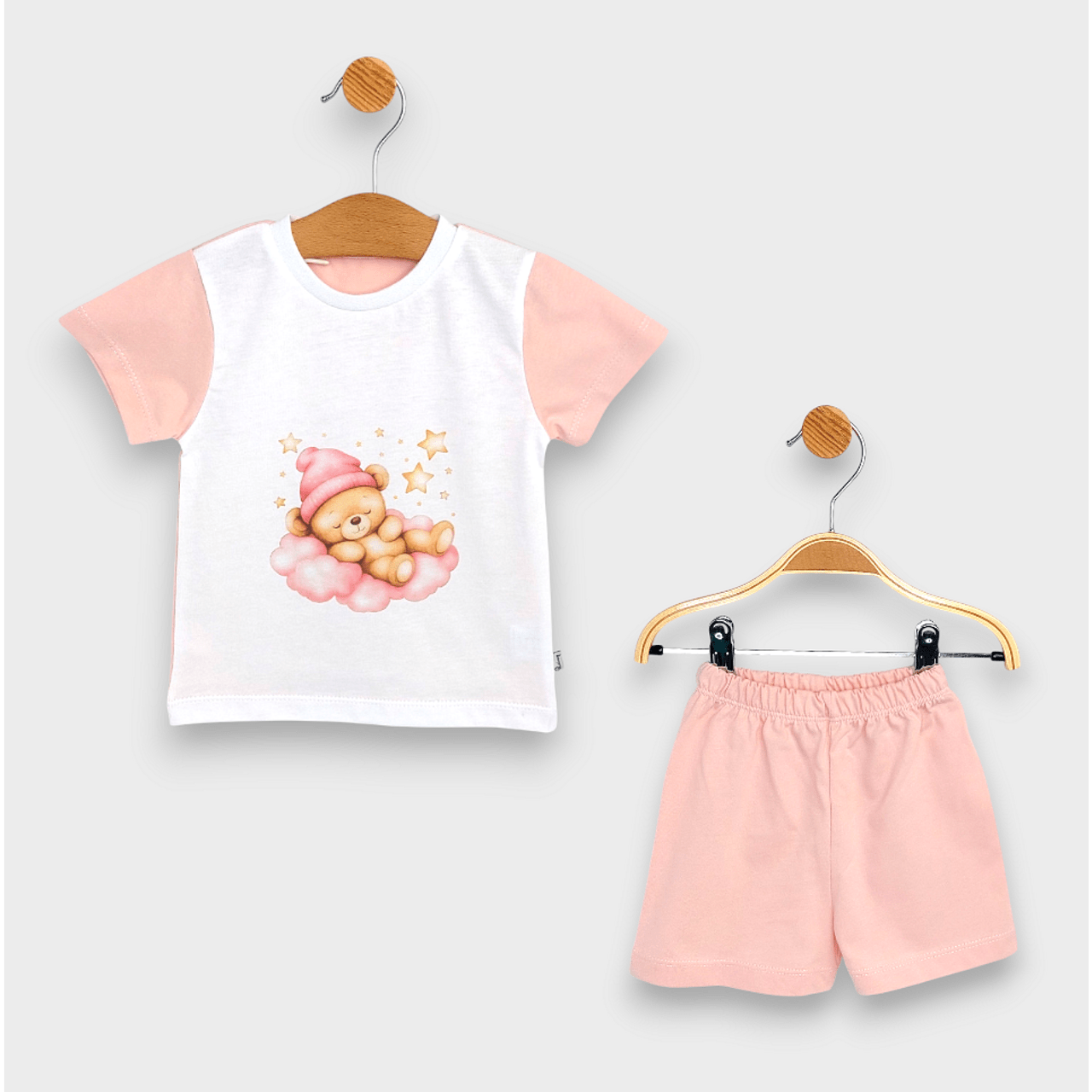Rainy Детска пижама с къс ръкав Звездно мече розов 74 - 110 см. бял/бонбон