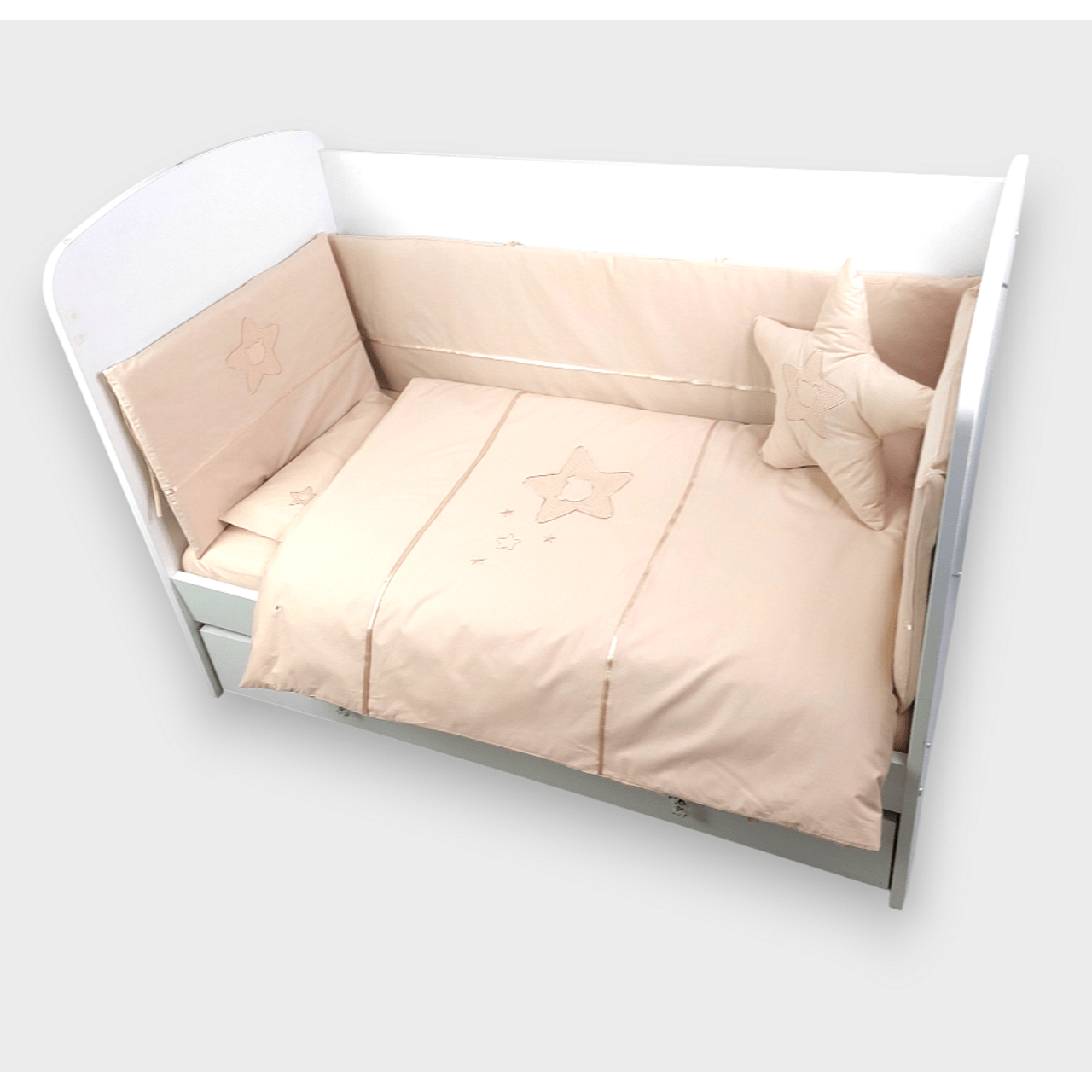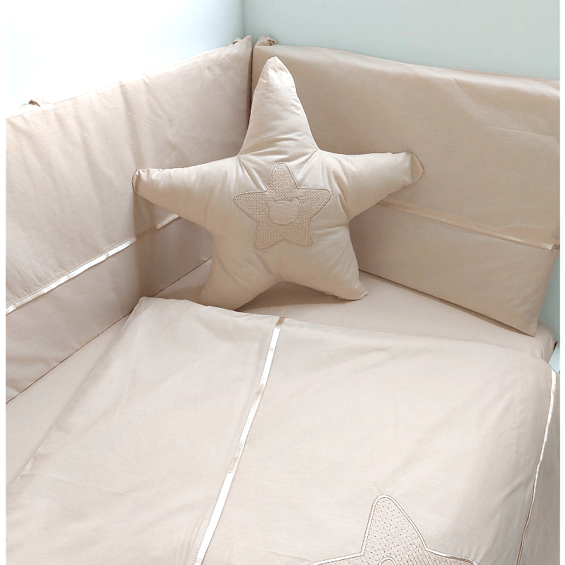 Rainy Бебешки спален комплект 7 части с обиколник 70х140 см. Звезда с мече бежов
