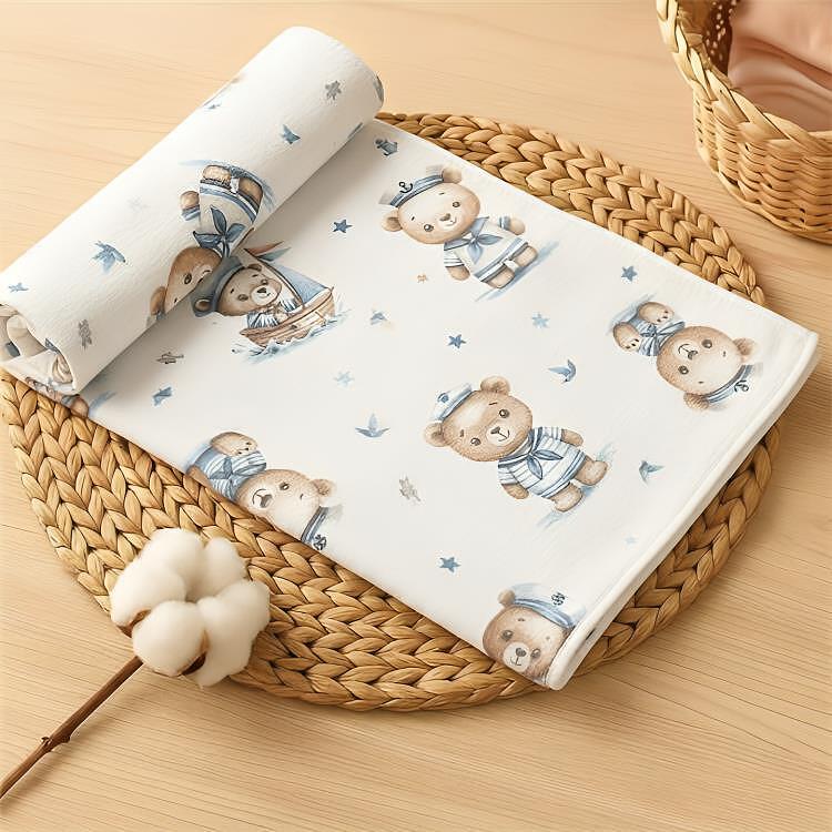 Бебешка памучна пелена от бархет Мече моряче ще ви е необходима още от първите дни на бебето. Може да се слага на подложката за преповиване, като предпазна пелена между бебето и околния свят през първите месеци, като завивка през летните дни, по време на къпане, както и като защита върху коша за новородено или седалката на количката. Бебешката пелена е изработена от мека и деликатна памучна материя. Декорирана с нежен принт, от трайни и безопасни бои. Подходяща както за вкъщи, така и за разходка навън.
