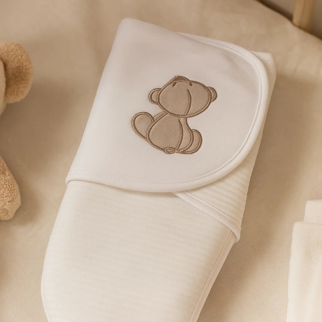 Заобиколете вашето новородено с нежност и комфорт с бебешката пелена "Прегърни ме Мече със звезди" в нежен цвят от Rainy. Представете си как малкото ви съкровище е обгърнато в меката прегръдка на тази пелена, усещайки топлината и любовта, която заслужава.