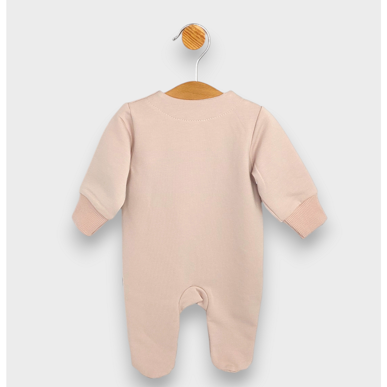 Изработен от меки и устойчиви материали, гащеризонът е предназначен да предпази вашето мъниче в прохладните дни, като същевременно гарантира свобода на движението. Размерите варират от 56 до 74 см, което го прави подходящ за деца от раждането до около шестия месец. Стилният дизайн с надпис добавя усещане за индивидуалност и модерен акцент към бебешкия гардероб.