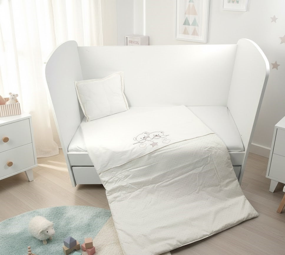 Подходящ за младите родители, които ценят качеството и искат да осигурят на своето дете най-доброто от самото начало. С този комплект вие инвестирате в уютни и спокойни нощи за вашето малко съкровище, като същевременно добавяте стил и очарование към интериора на детската стая.