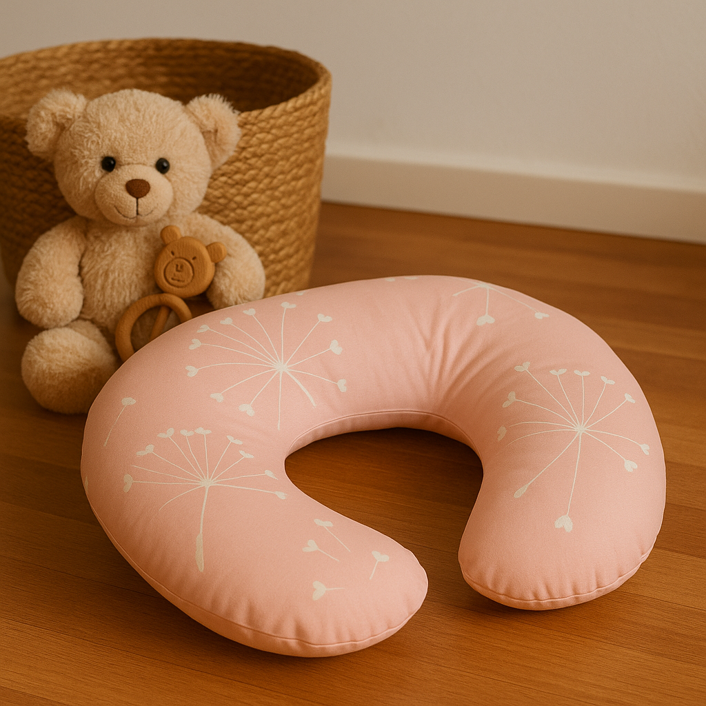 Възглавница за кърмене със силиконов пълнеж и калъф от ранфорс.