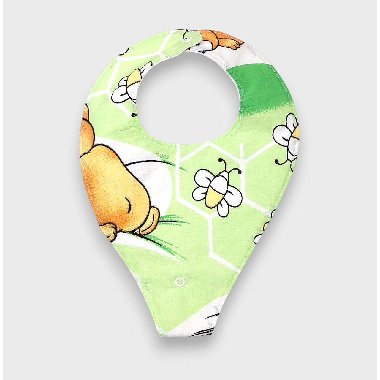 Лигавникът тип бандана спомага за предпазване на бебешките дрешки от намокряне и зацапване по време на хранене и пиене на вода. Разполага с държач за бебешка залъгалка в долната си част, който се закопчава посредством тик-так копче и ще предотврати изпускането и замърсяването на биберона.