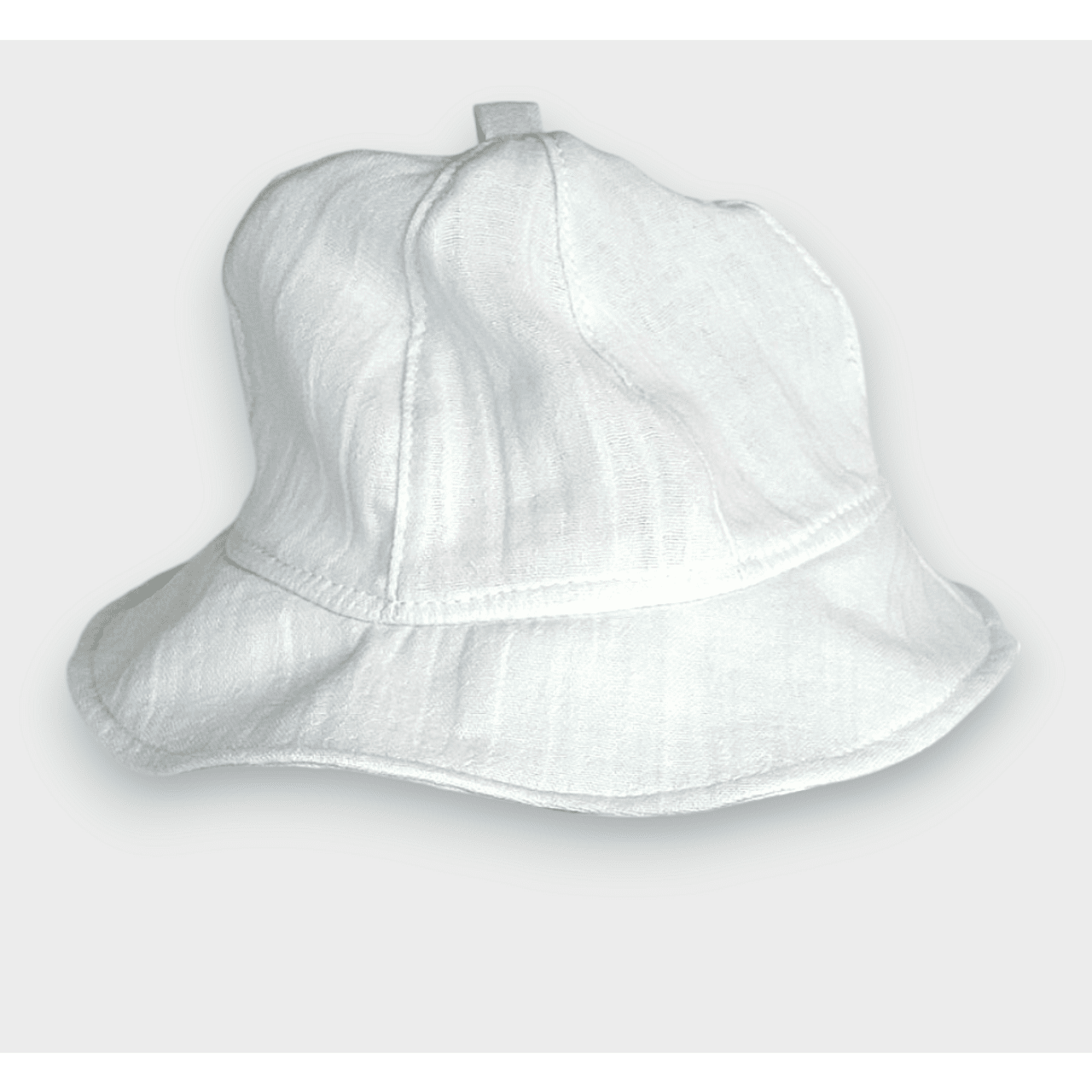 Изработена от висококачествен муселин, тя предлага нежност и комфорт, които са от съществено значение за чувствителната бебешка кожа. Периферията на шапката осигурява допълнителна защита от слънчевите лъчи, което я прави перфектна за разходки на открито.