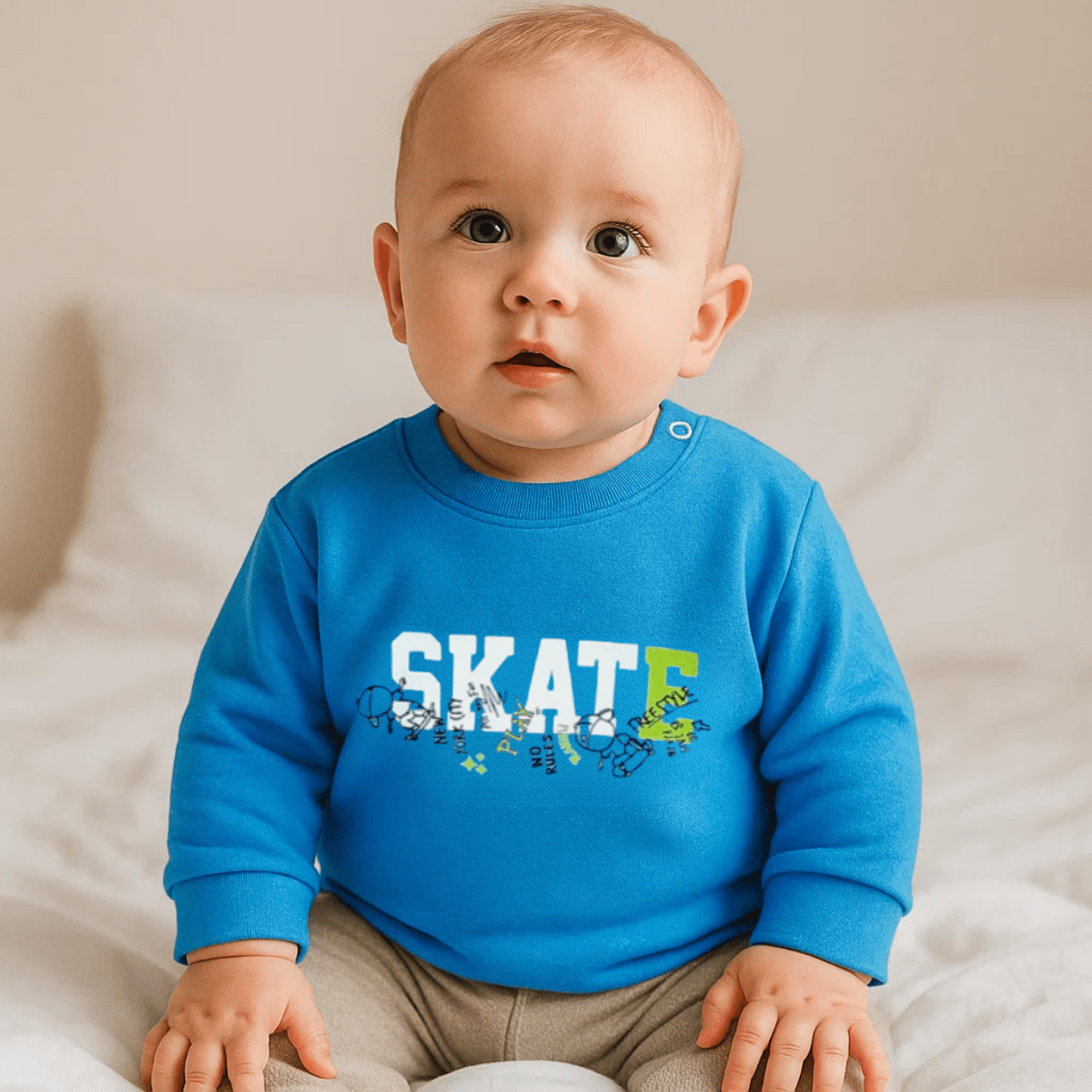 Бебешка блуза с дълъг ръкав Skate е със свободна и удобна кройка. Изработена от мека и лека метирия. Блузата се комбинира чудесно с всеки панталон . С весела и закачлива картинка.