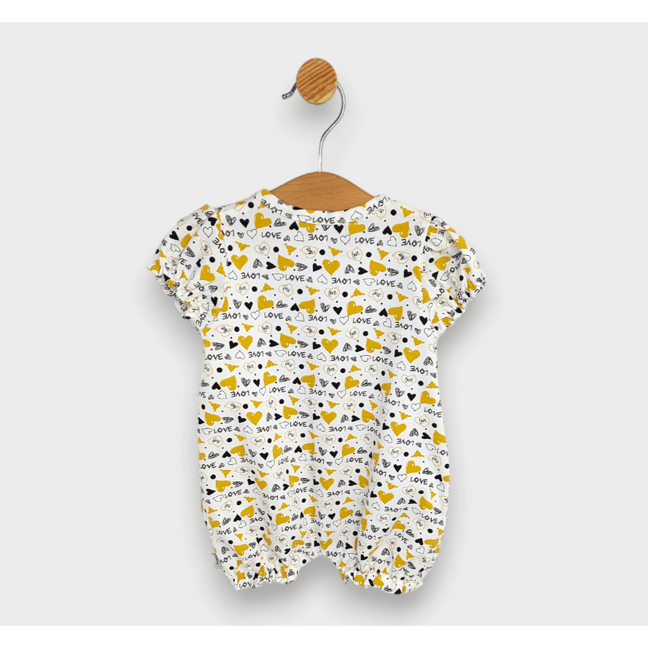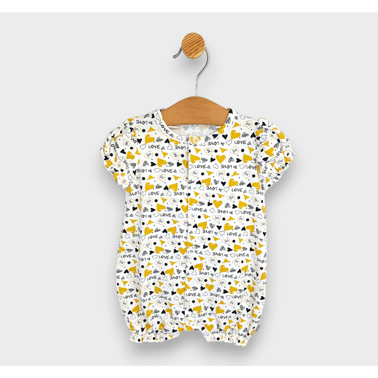 Rainy Бебешки гащеризон с къс ръкав 56-80см. Жълти сърца