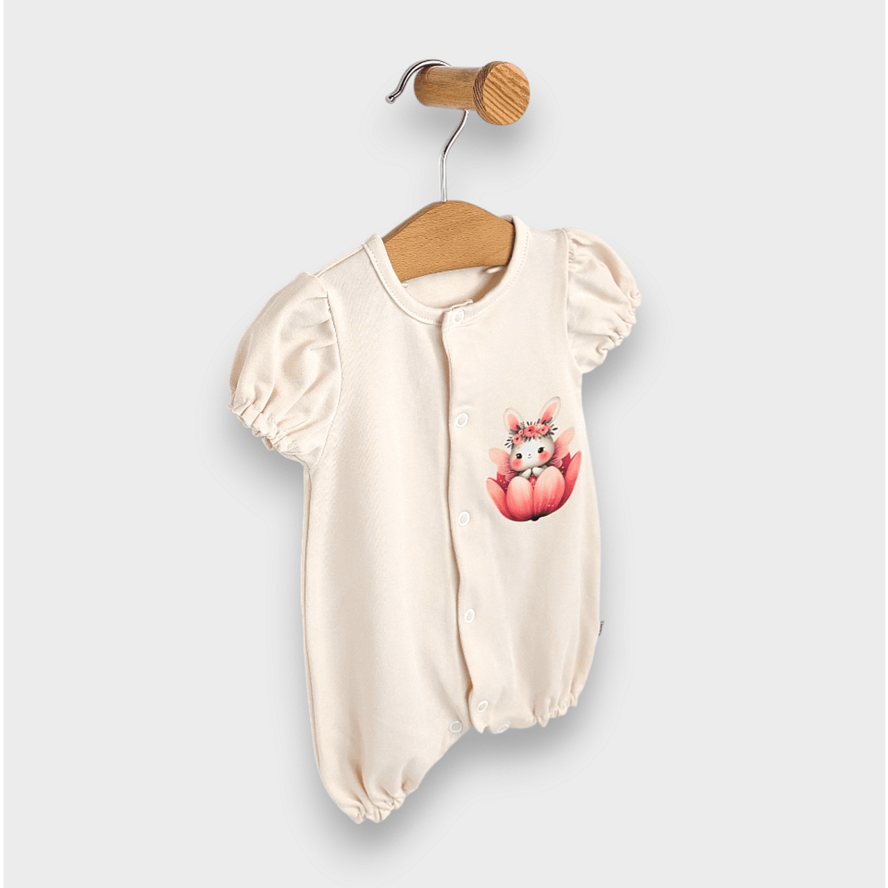 Rainy Бебешки гащеризон Зайче в цвете с къс ръкав 56-80см. екрю
