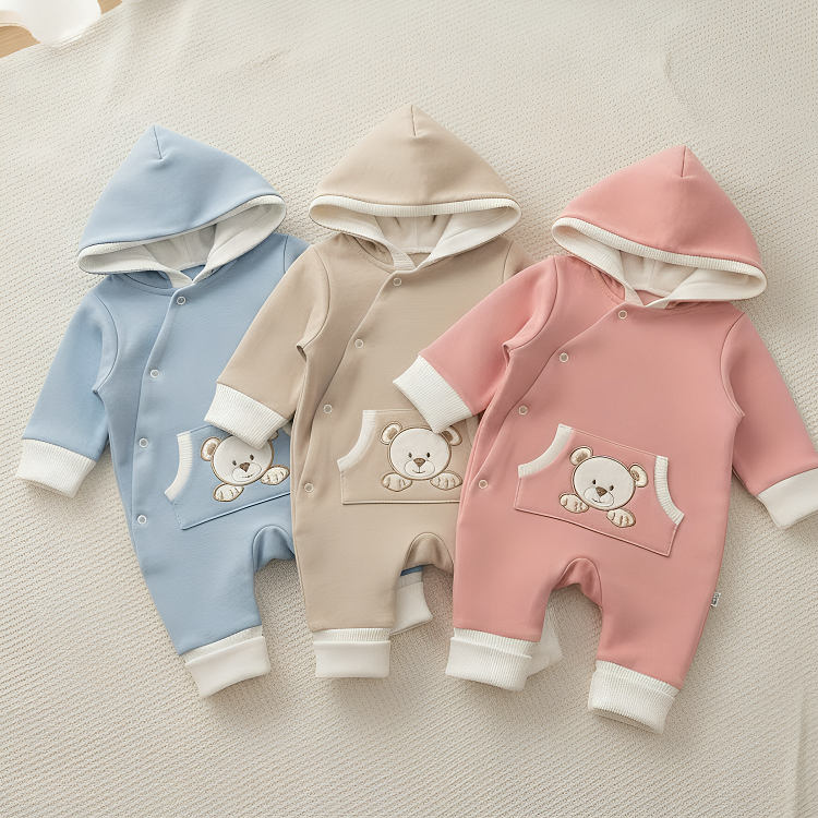 Изберете качество и уют за вашето бебе с "Rainy Бебешки гащеризон с качулка Мече с лапички", и нека всяка разходка, дори и под дъжда, бъде топла и весела.