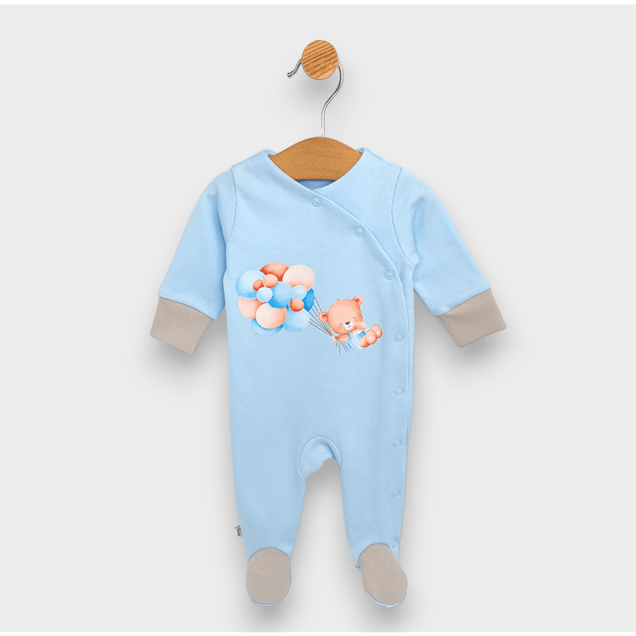 Удобство и функционалност: Изработен от висококачествени материали, гащеризонът е мек и нежен към бебешката кожа, осигурявайки топлина и уют през студените дни. Размерите са подходящи за деца от раждането до четвъртия месец, а атрактивният дизайн с мече и балони в нежен син цветен нюанс ще направи вашето бебе звезда на всяко събитие.