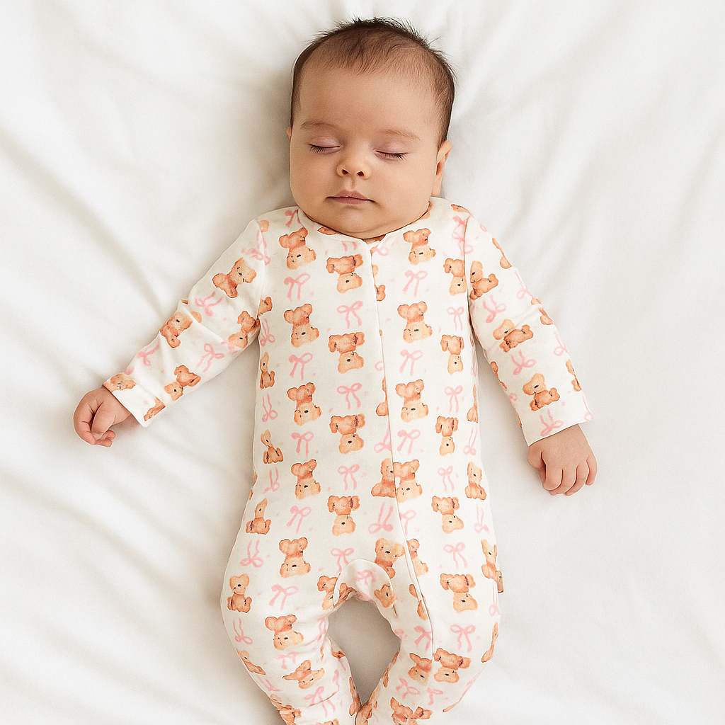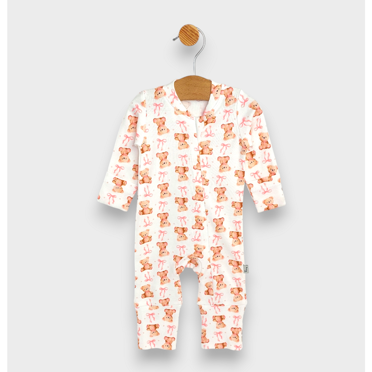 Rainy Бебешки гащеризон с ръкавички и чорапче 48 - 62 см. Мече с панделка