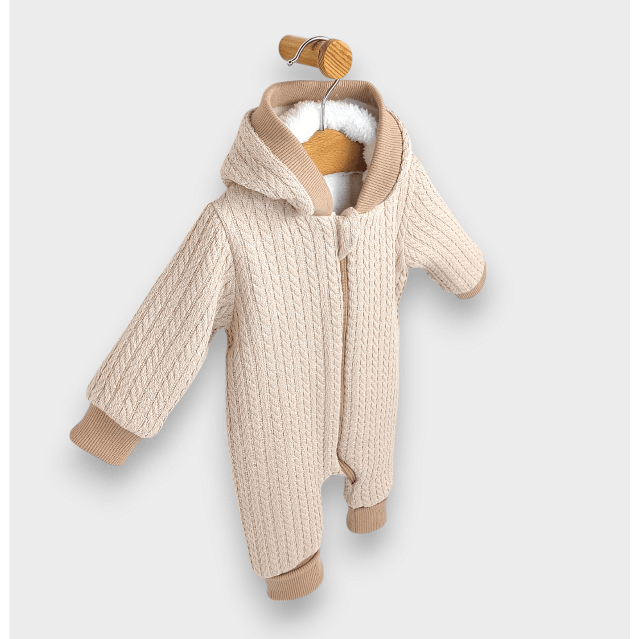 Защо да изберете обикновен гащеризон, когато може да облечете вашето мъниче в топлина и стил? Представяме ви "Rainy Бебешки плетен гащеризон с цип и качулка 56 - 80 см. бежов" - перфектният избор за вашия малък принц!