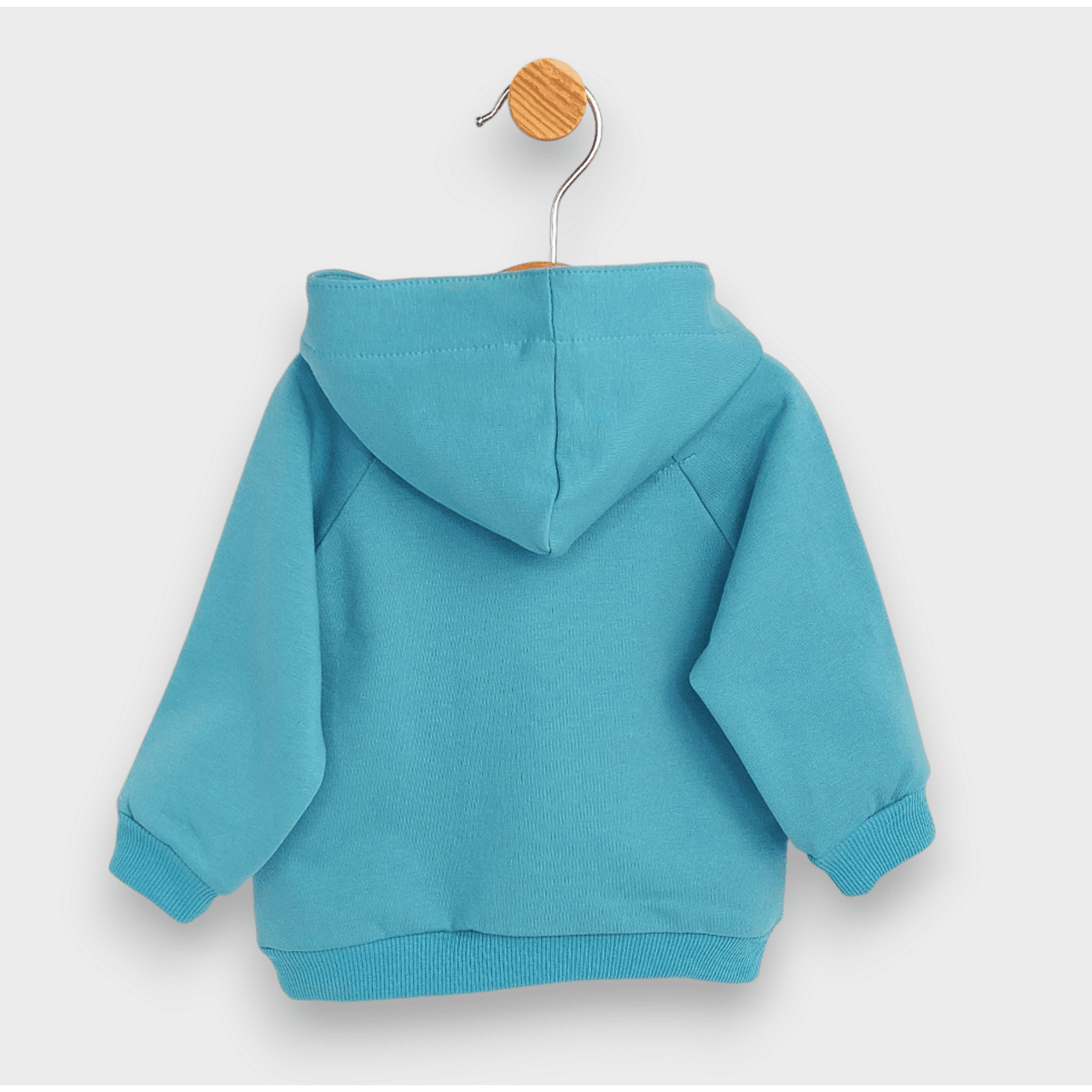Изработен от висококачествени материали, този комплект е идеалният избор за вашето бебе от 62 до 92 см. Включващ меко худи с дълъг ръкав и удобни панталони, той осигурява пълна свобода на движение и комфорт през целия ден. Цветът допринася за елегантен и уютен външен вид.