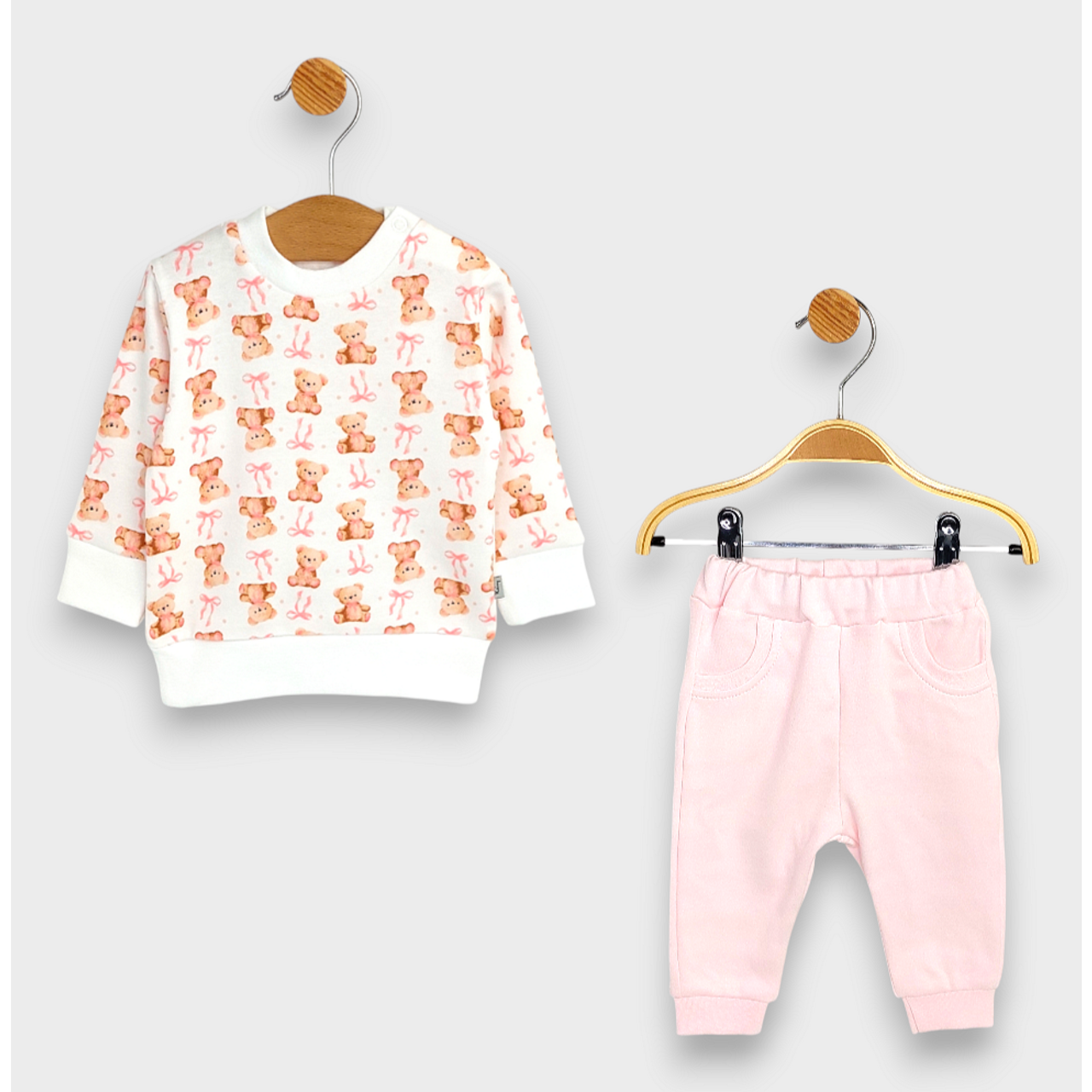 Rainy Бебешки комплект от 2 части Мече с панделка 62-92 см. розов