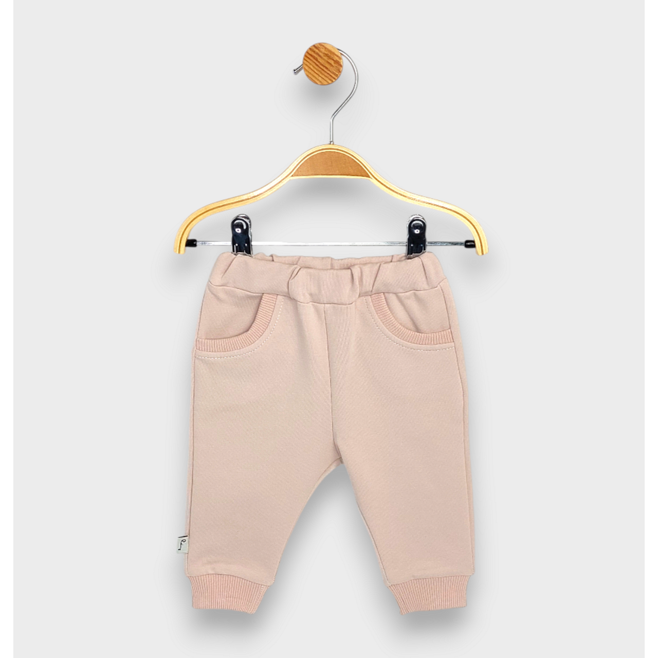 Комплектът се състои от: Блуза с дълъг ръкав и удобни панталони с ластик, които гарантират свобода на движение и лесно обличане. Материята е специално подбрана, комбинация от 95% памук и 5% полиестер (ватирано трико) за панталона и 100% памук за блузата, осигуряваща мекота и нежност към чувствителната бебешка кожа.