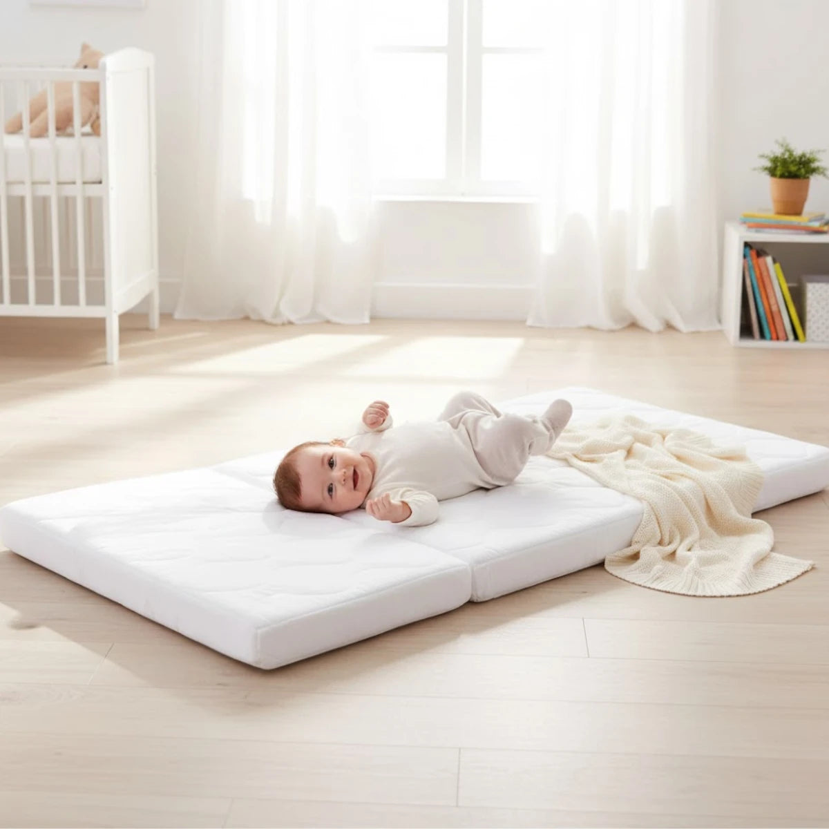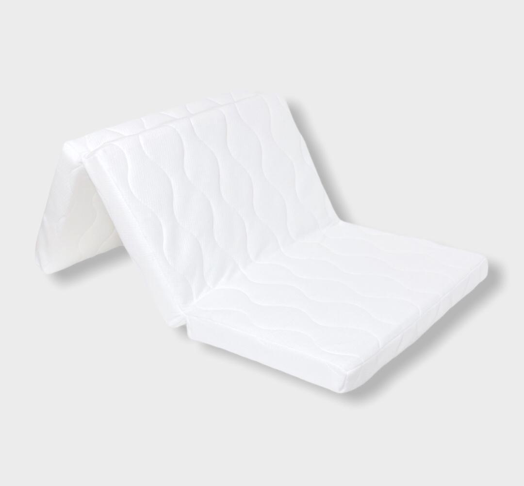 Бебешки сгъваем матрак от дишаща материя е хипоалергичен. Той има плътен пълнеж от мека пяна, за да може да се адаптира към тялото на бебето. Сгъваемият му дизайн позволява да го взимате с вас по време на пътуване. Калъфа го прави лесен за поддръжка, тъй като може да е сваля с удобен цип.