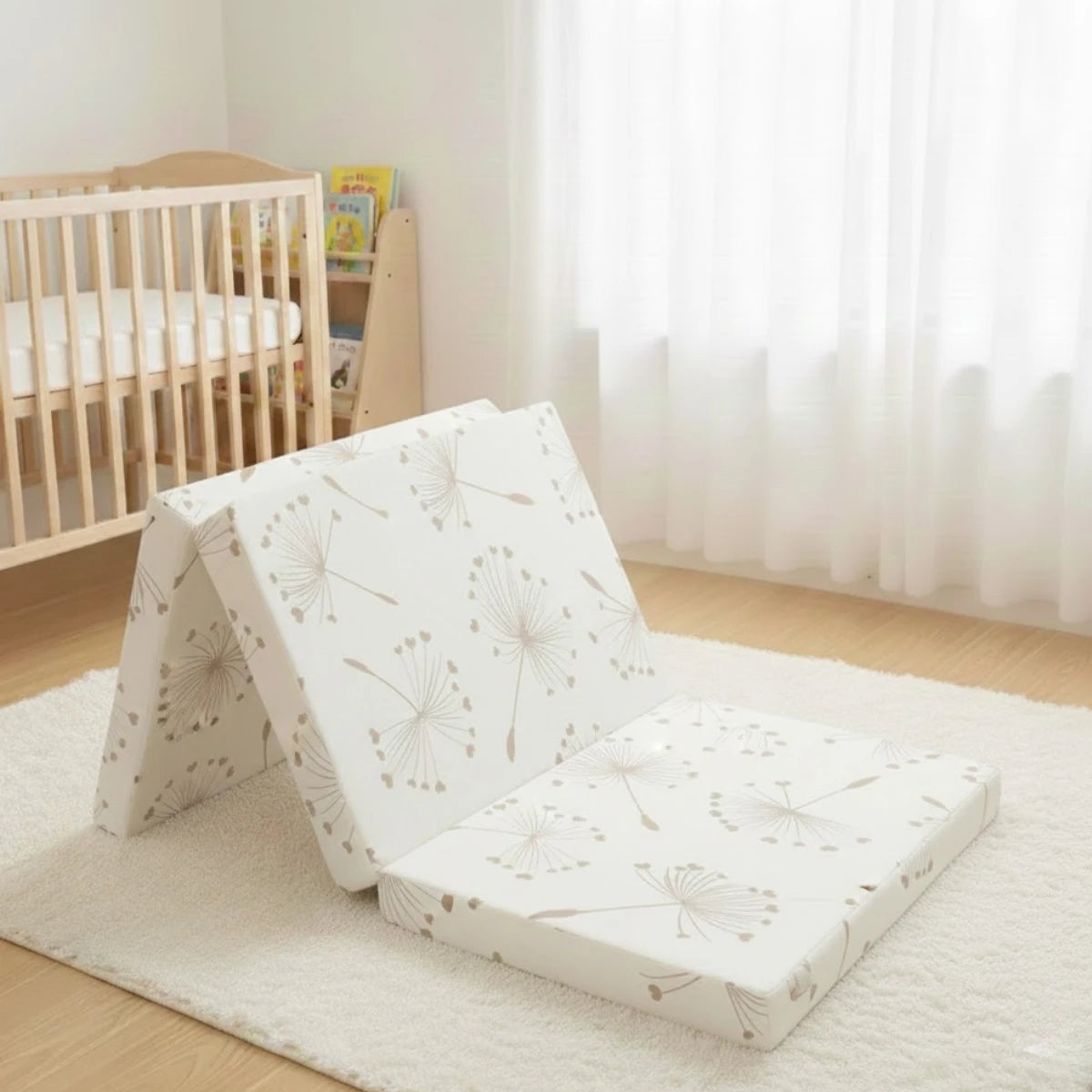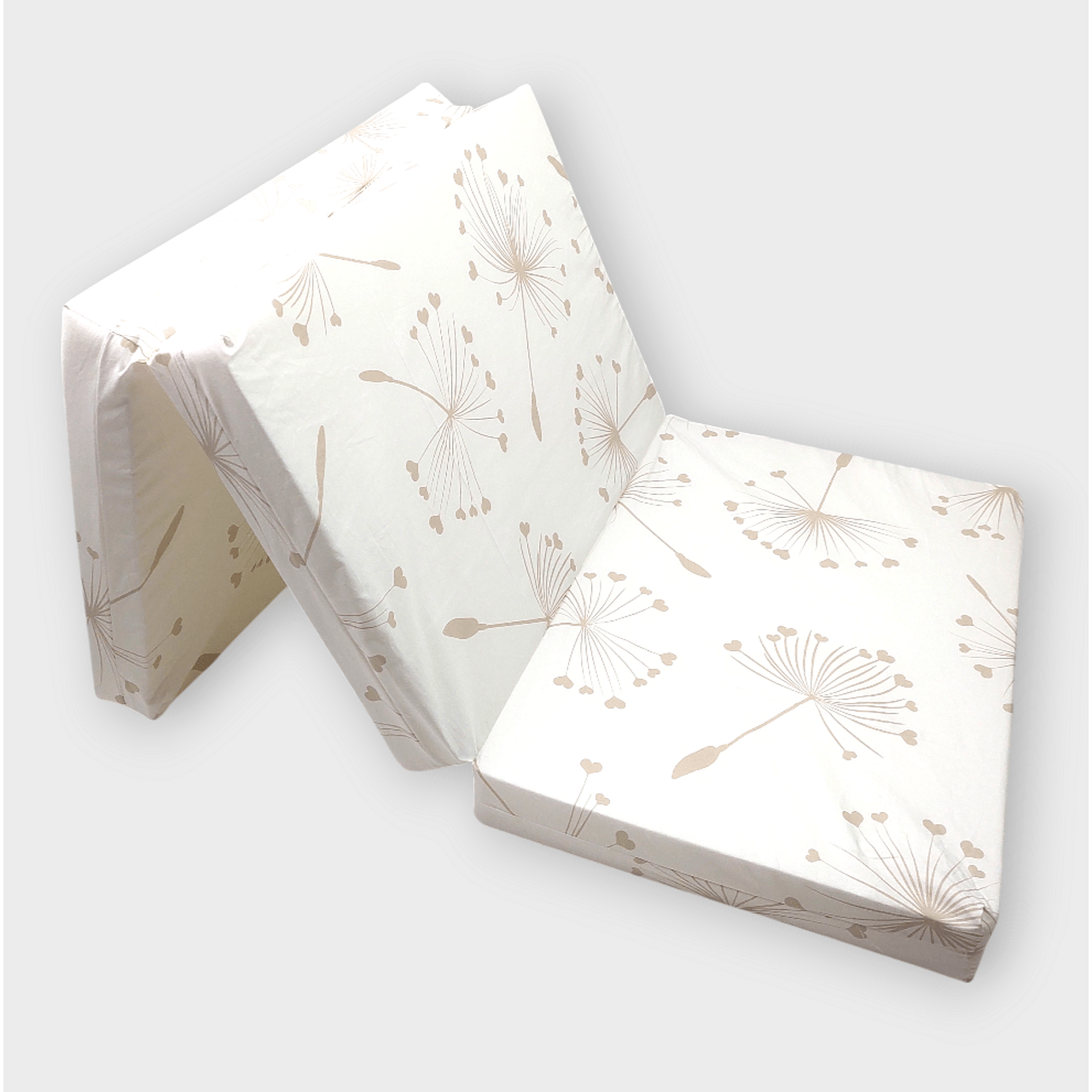 Бебешки сгъваем матрак Бежови глухарчета екрю е хипоалергичен и е изработен от 100% памучен ранфорс. Той има плътен пълнеж от мека пяна, за да може да се адаптира към тялото на бебето. Сгъваемият му дизайн позволява да го взимате с вас по време на пътуване. Калъфа го прави лесен за поддръжка, тъй като може да е сваля с удобен цип.