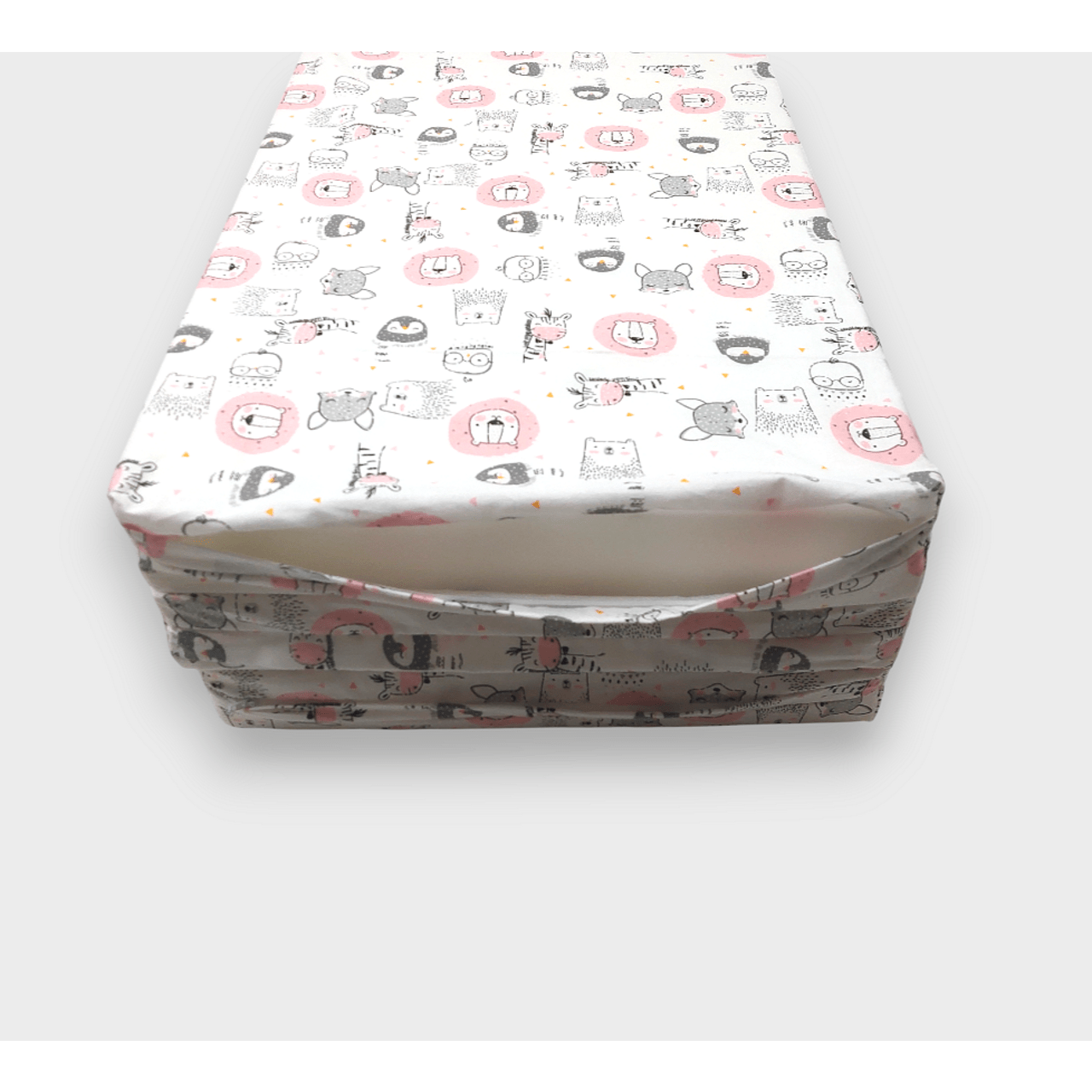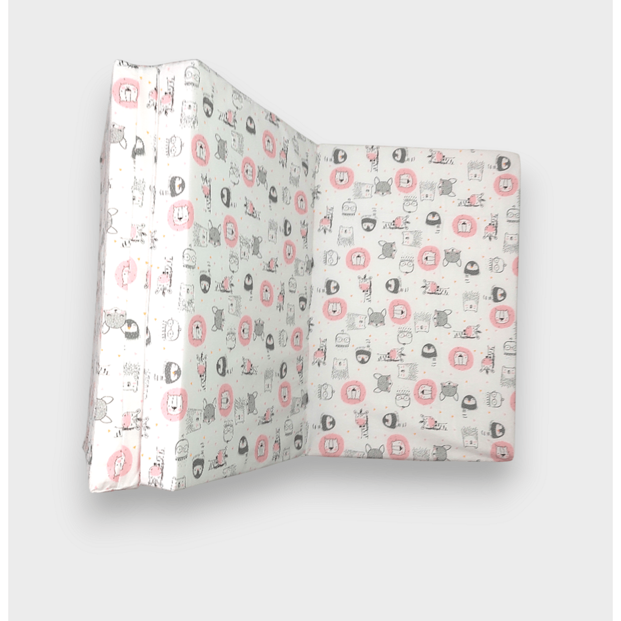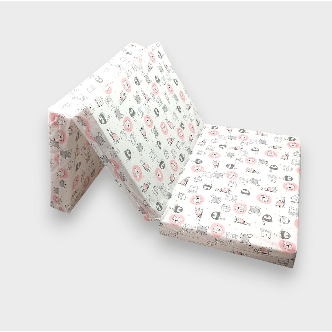 Бебешки сгъваем матрак Розови животинки е хипоалергичен и е изработен от 100% памучен ранфорс. Той има плътен пълнеж от мека пяна, за да може да се адаптира към тялото на бебето. Сгъваемият му дизайн позволява да го взимате с вас по време на пътуване. Калъфа го прави лесен за поддръжка, тъй като може да е сваля с удобен цип.