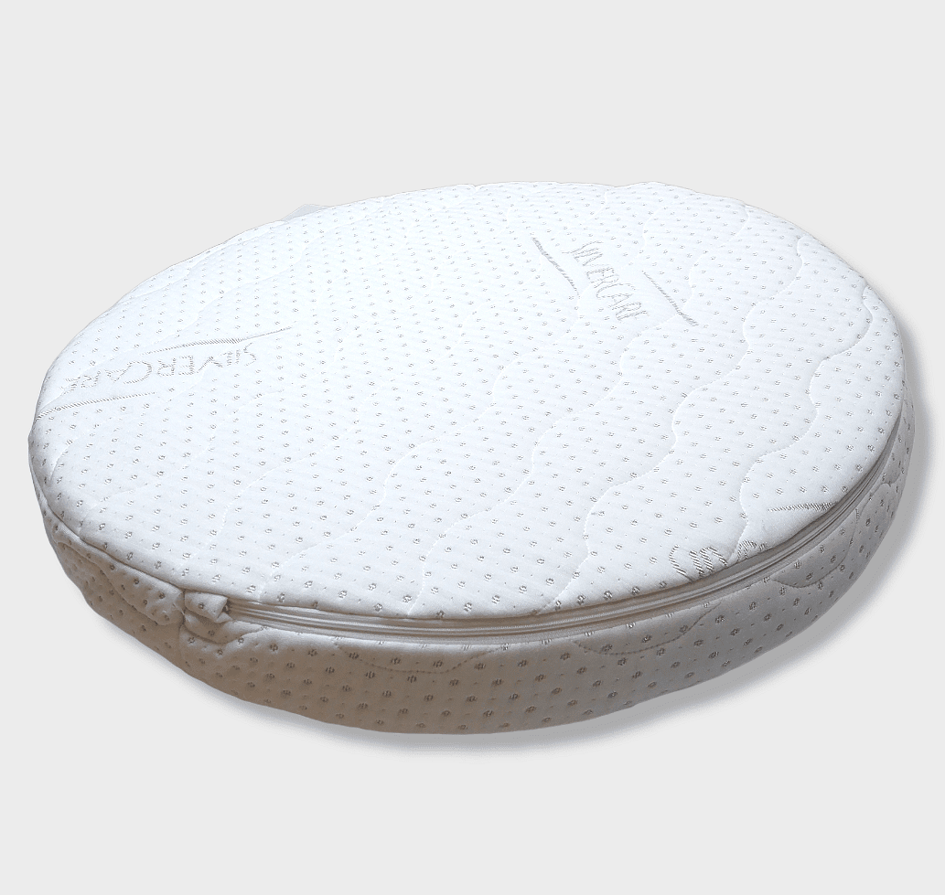 Матрак за бебешка кошара Angelo Transformer (кръг) с пълнеж от полиуретан, и калъф от дишаща материя Сребърни нишки