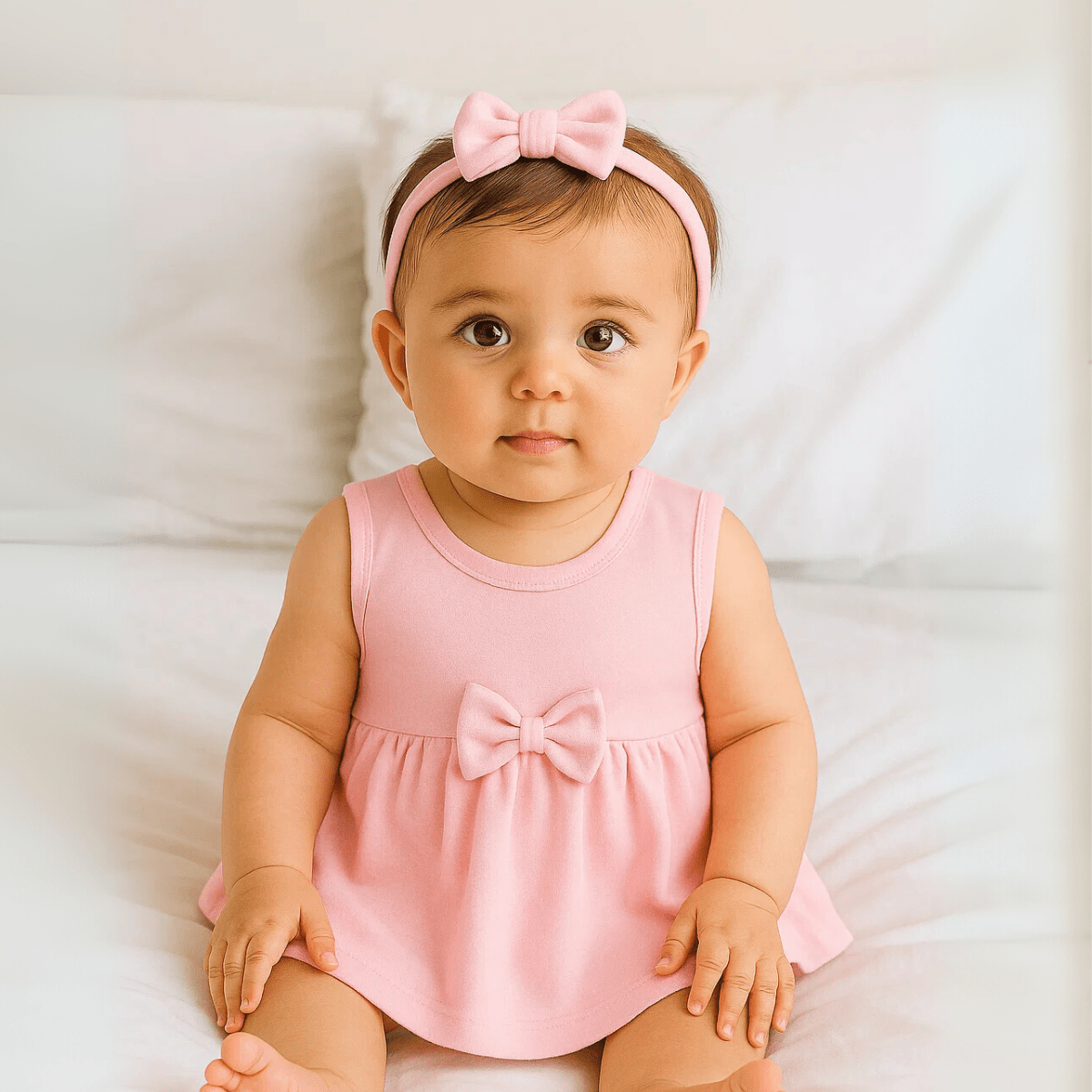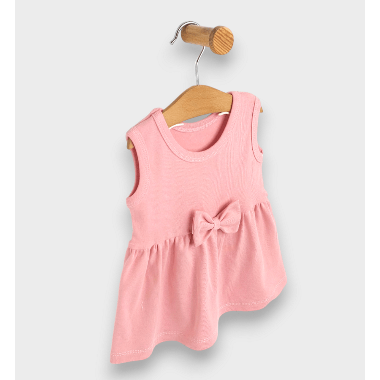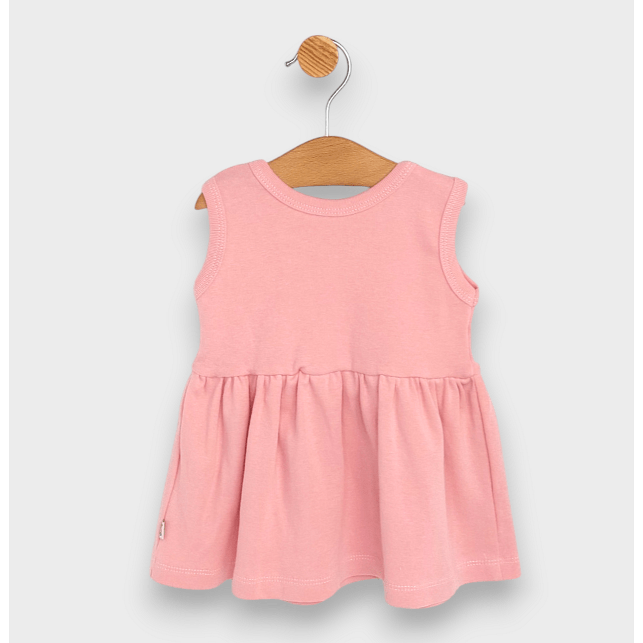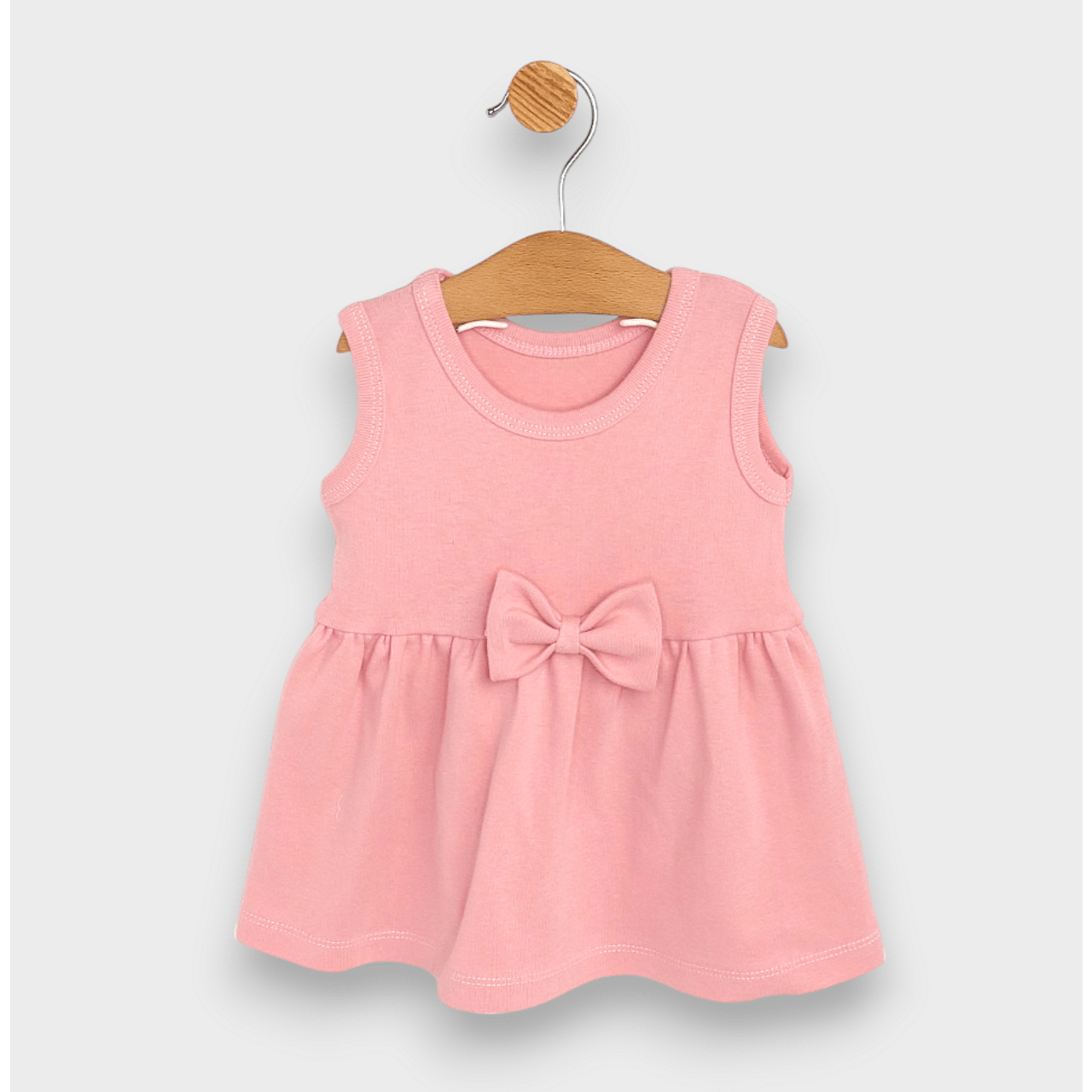 Разкошна бебешка рокля от 2 до 24 месеца в нежни цветове. Горната част на роклята е без ръкави. Елегантна и практична бебешка рокля, подходяща както за ежедневието, така и за специален повод.
