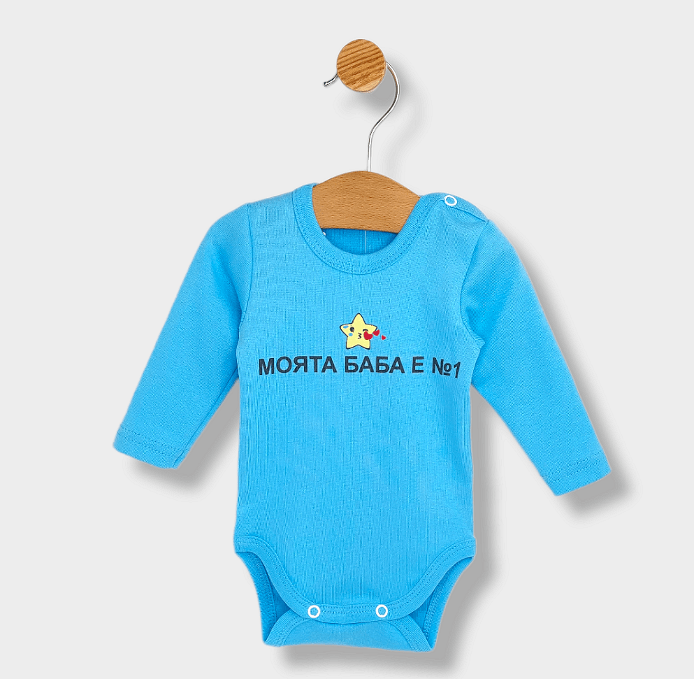 Rainy Бебешко боди с дълъг ръкав 48-86см. Моята баба е №1 тюркоаз