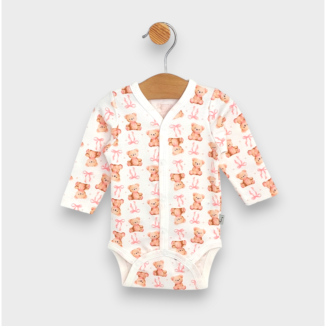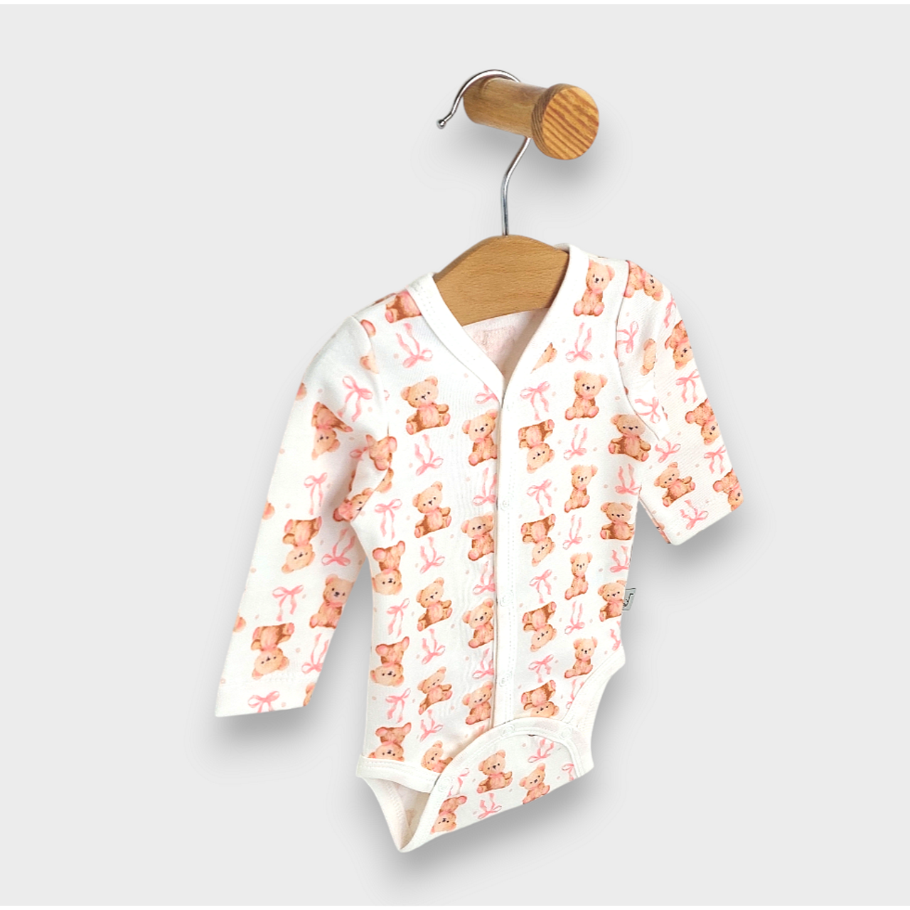 Rainy Бебешко боди с дълъг ръкав и предно закопчаване 48 - 68см. Мече с панделка