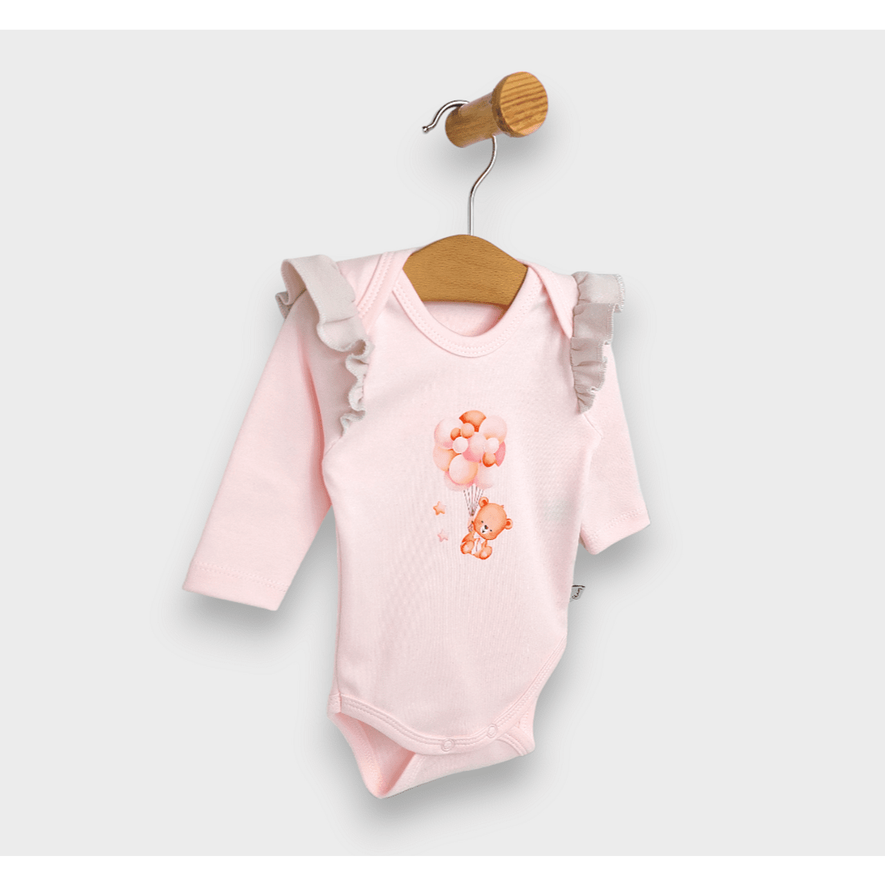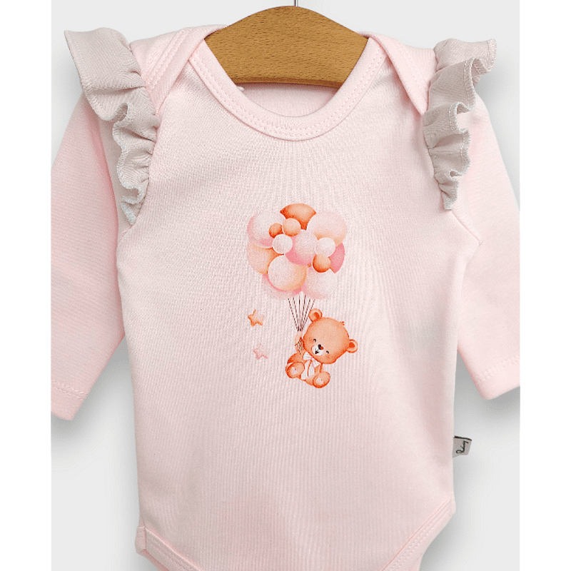 Rainy Бебешко боди с дълъг ръкав Мече с балони розов 48 - 62см.