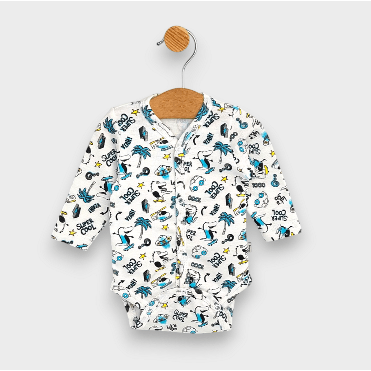 Rainy Бебешко боди с дълъг ръкав и предно закопчаване 48 - 62 см. Let's go Dino