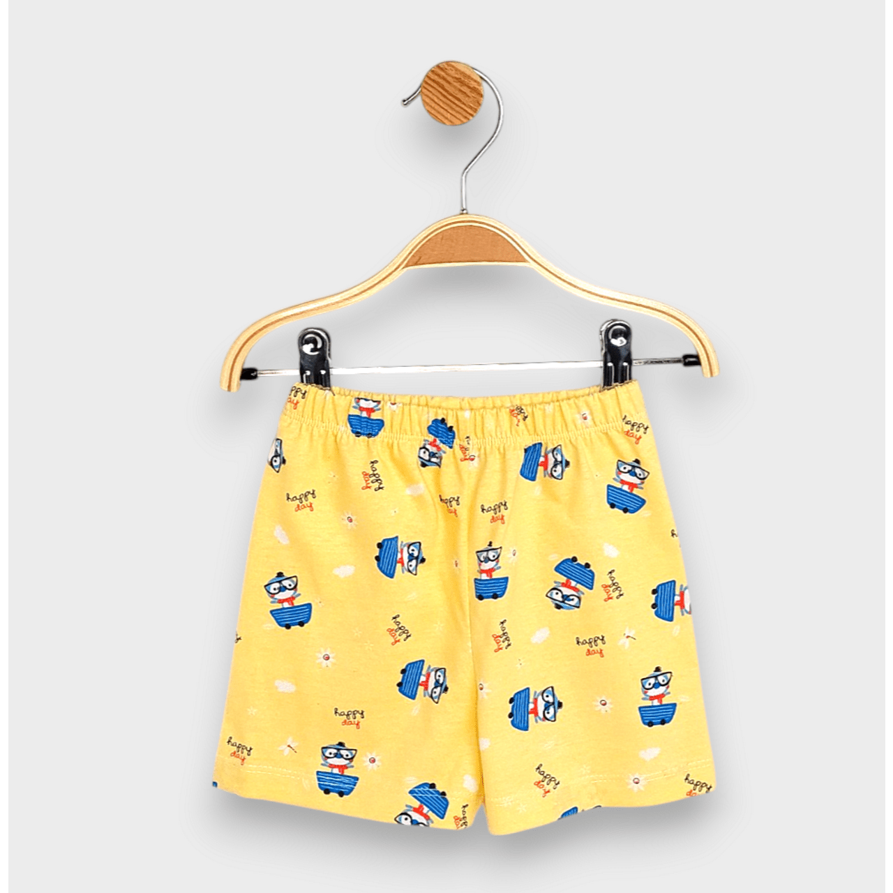 Детска пижама с къс ръкав от щампирано трико ще пренесе децата с лекота в чудния свят на сънищата.Тя е чудесен избор - удобна и практична. Свободната кройка и удобният ластик на талията позволяват максимален комфорт през цялата нощ.