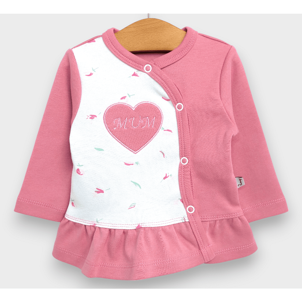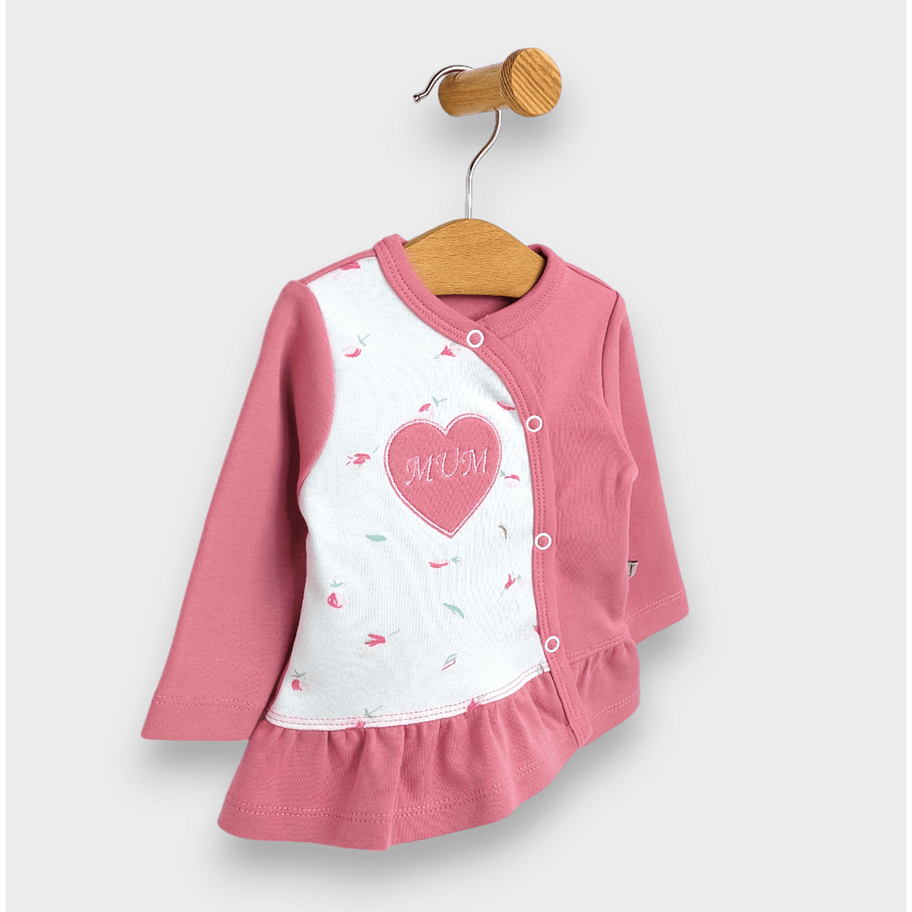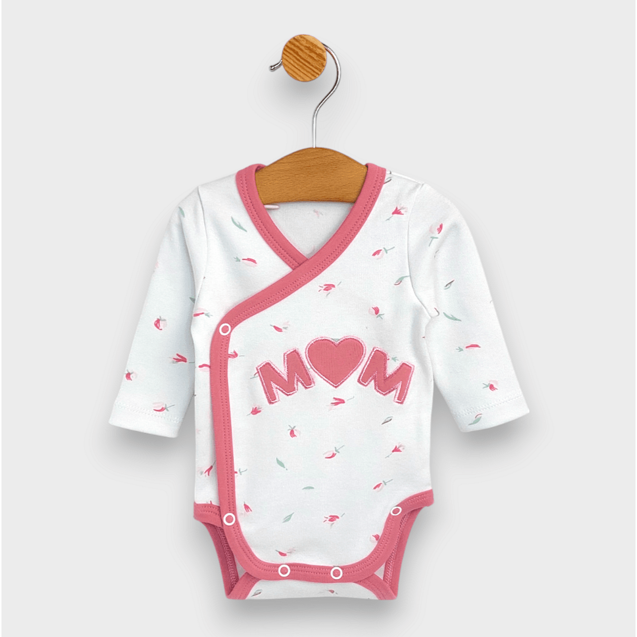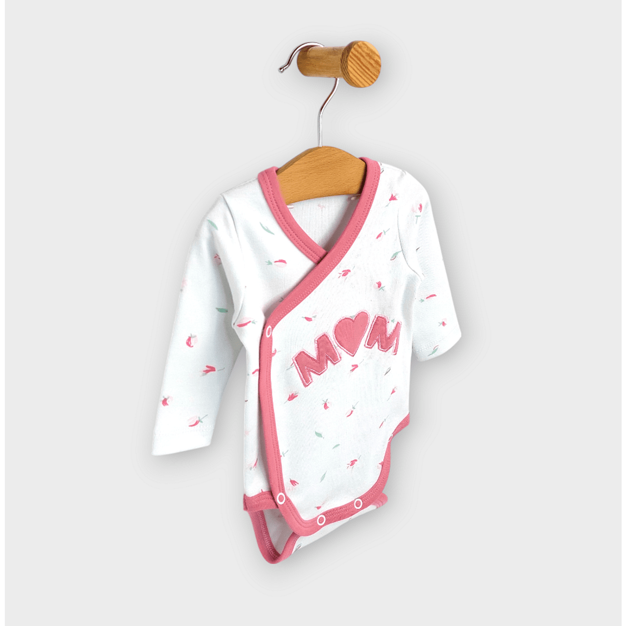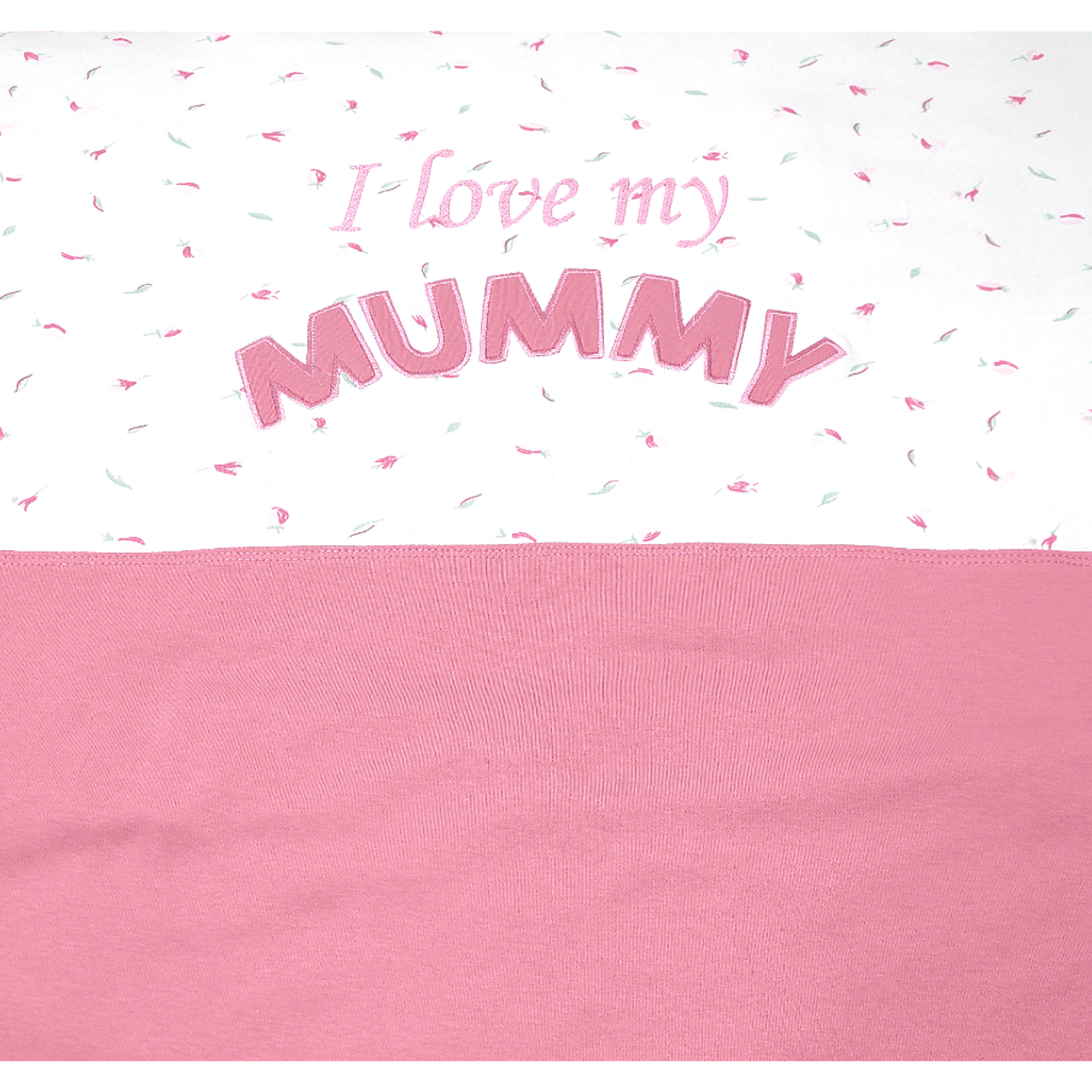 Сладкият дизайн с мотив "I love my mummy" в нежен розов цвят добавя чар и игривост, правейки комплекта перфектен за малките принцеси. Включва всичко необходимо за първите дни на бебето у дома или в болницата, като по този начин осигурява спокойствие и увереност, че сте подготвени за всяка ситуация.