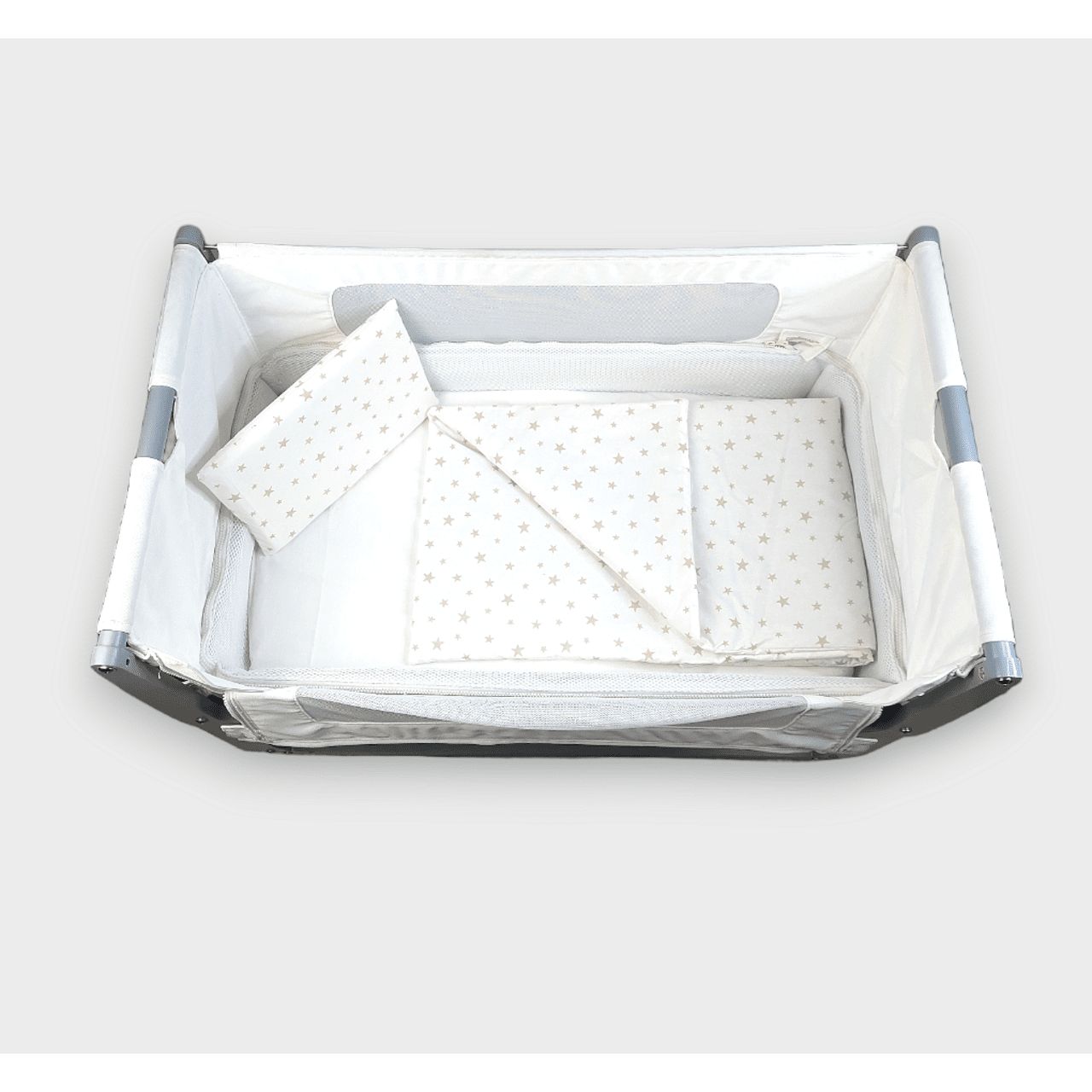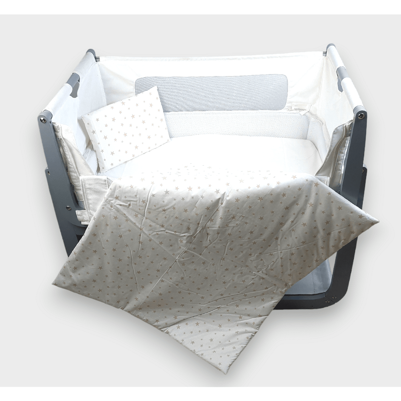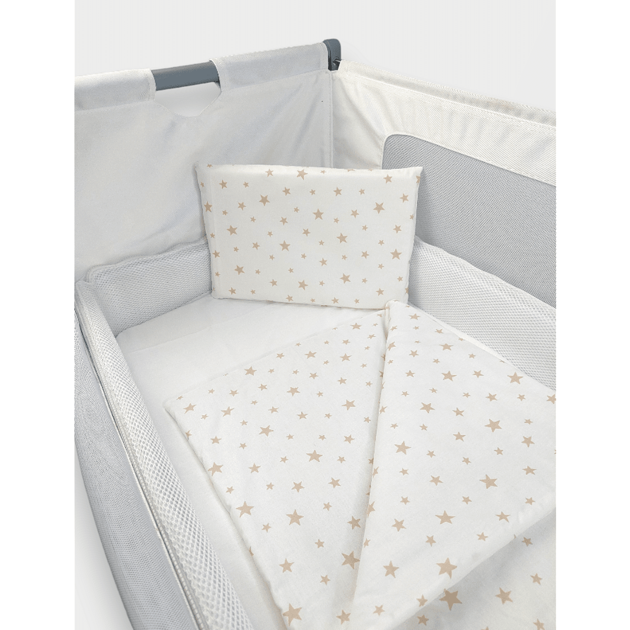 Бебешки спален комплект за мини кошара от ранфорс щампа Бежови звезди