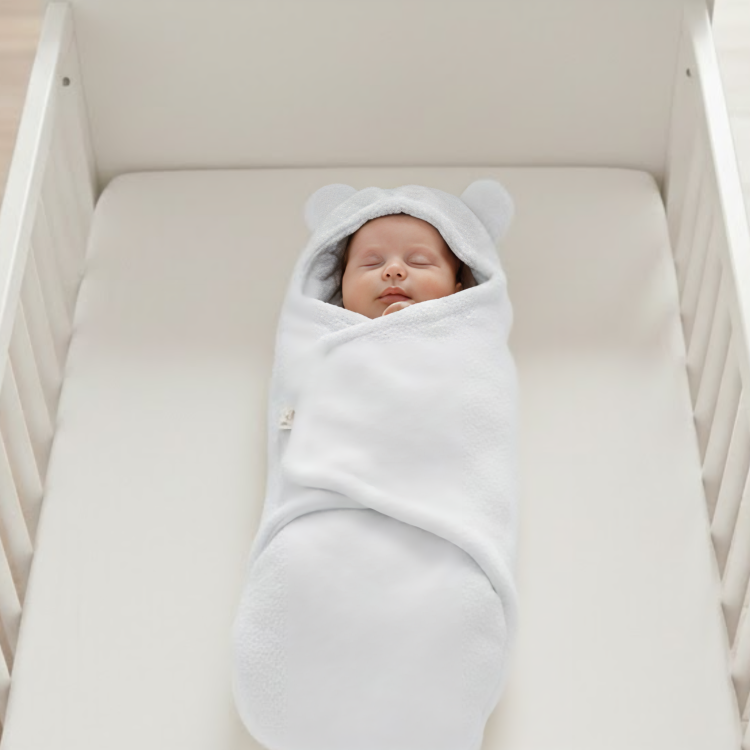 Бебешка пелена тип чувалче за изписване, която предпазва и главата на бебчето със закачлива качулса с ушички. Удобно закопчаване с тик-так копчета и прехлупване, което придържа ръчичките на новороденото бебе, като ме помага за по-добрия сън.