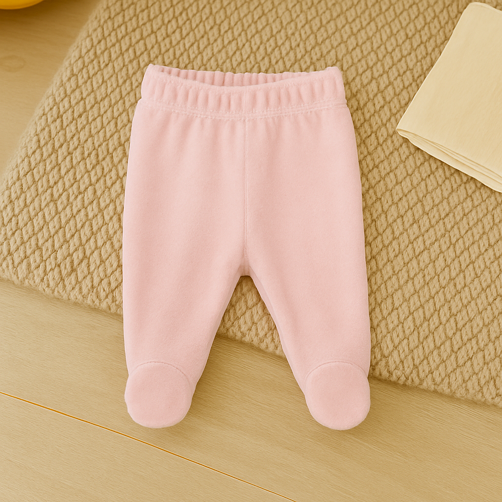 Бебешка плюшена ританка от нежна и мека материя в пастелни цветове. Изработена от щадяща мека материя деликатна за бебешка кожа. Бебешката ританка се предлага от новородено до 9 месечна възраст.