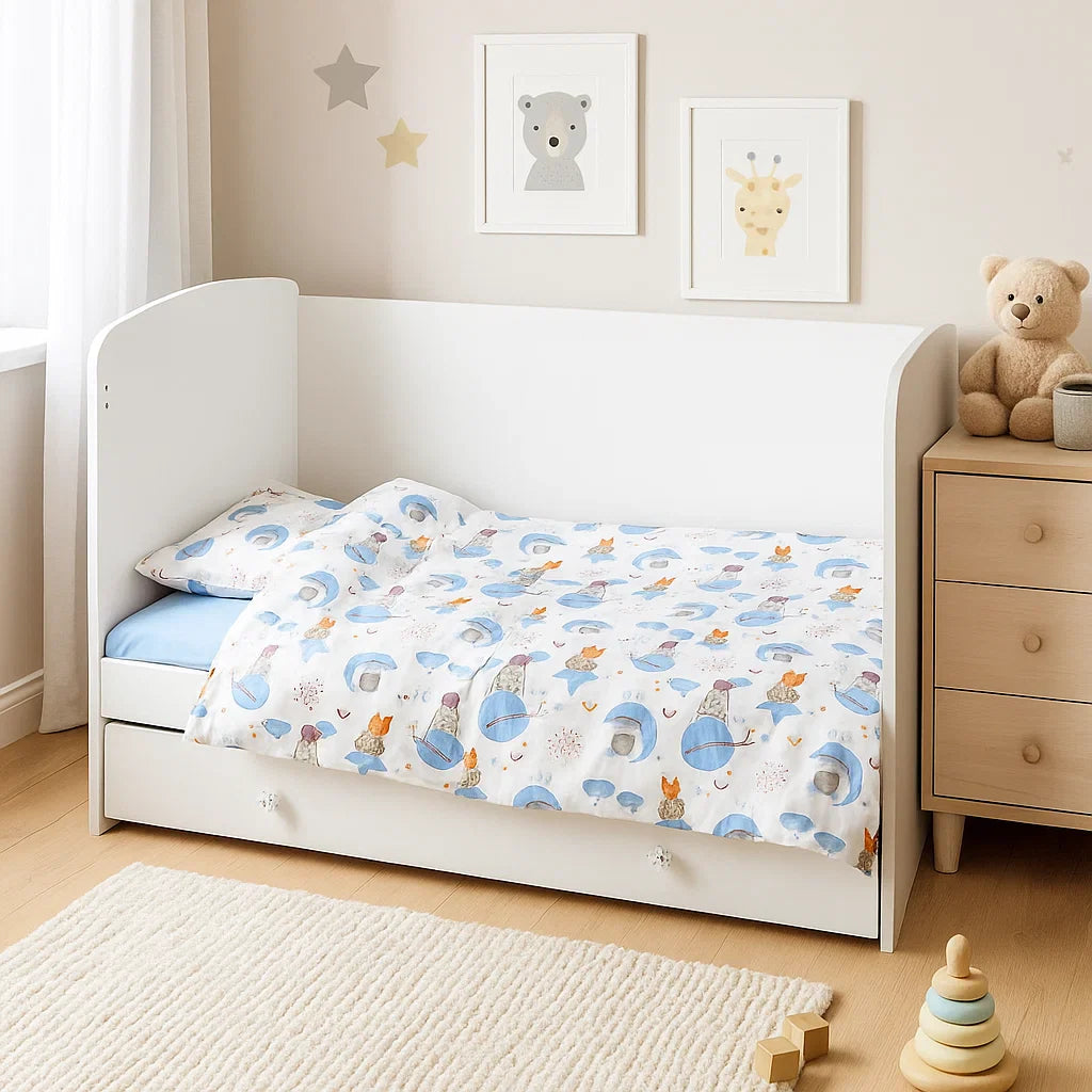 - Висококачествен 100% памук ранфорс, мек и нежен към чувствителната детска кожа.